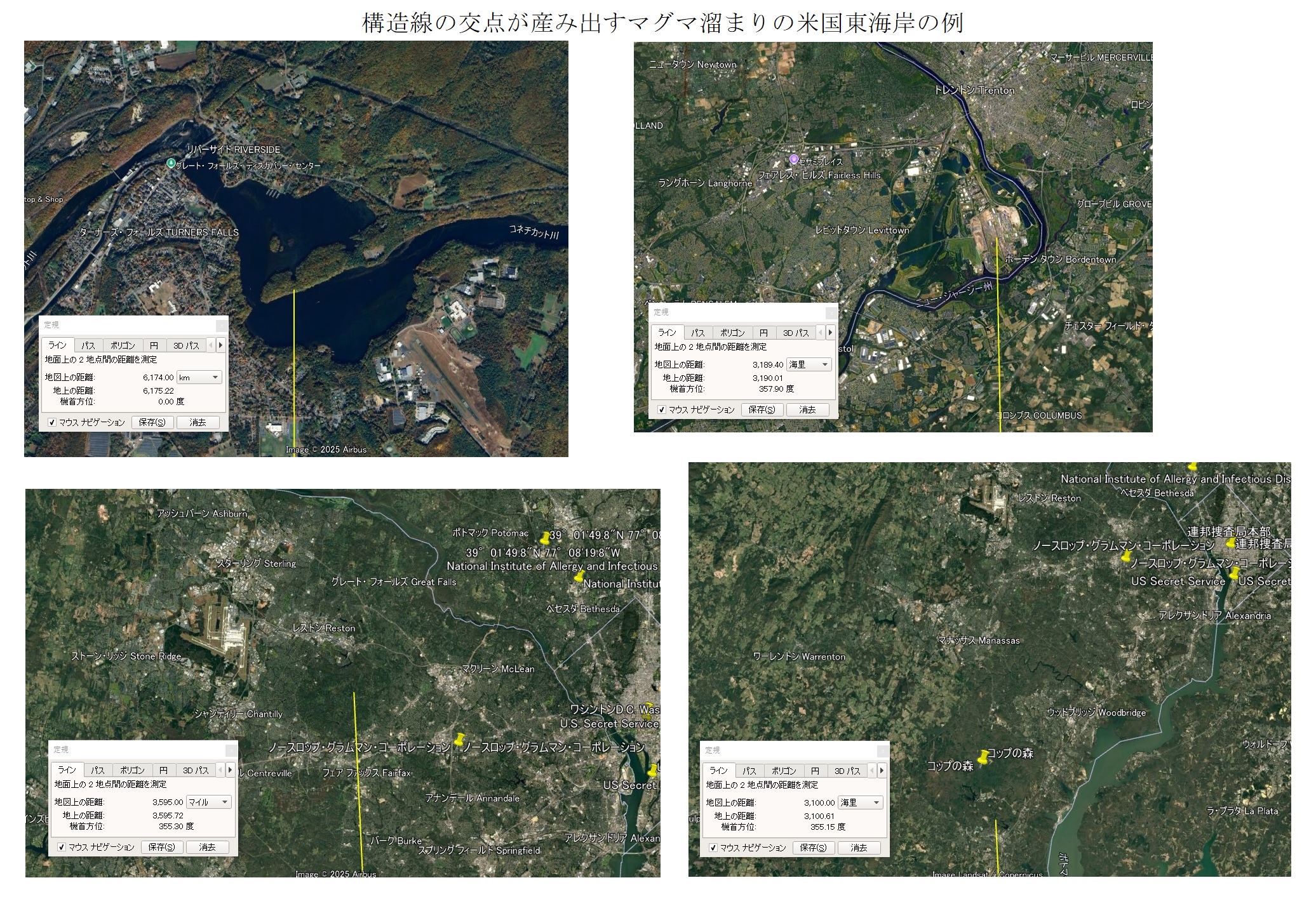 バン・サイバー湖は、東隣にあるマグマ溜まりが活動的で盛り上がってくると、デラウエア川の90度折れ曲がる部分に水が流れなくなり、バン・サイバー湖側が川になるのでした。現在コネチカット川のドクターズ・アイランド周辺の火口湖も同様であり、ここは今沈み込んでいるのでした。盛り上がると周辺の川が息を吹き返すのであり、マグマ溜まり近辺の川は干上がるのでした。この状況が地形の特徴に残されており、今だと水の流れないはずの場所に川の痕跡が残されているのでした。これが繰り返されている部分にも、高い可能性を見せていることになるのでした。