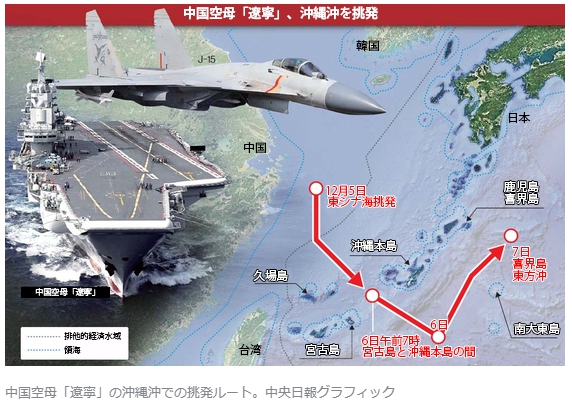 中国空母、今度は沖縄を挑発…島々の間で艦載機が100回離着陸