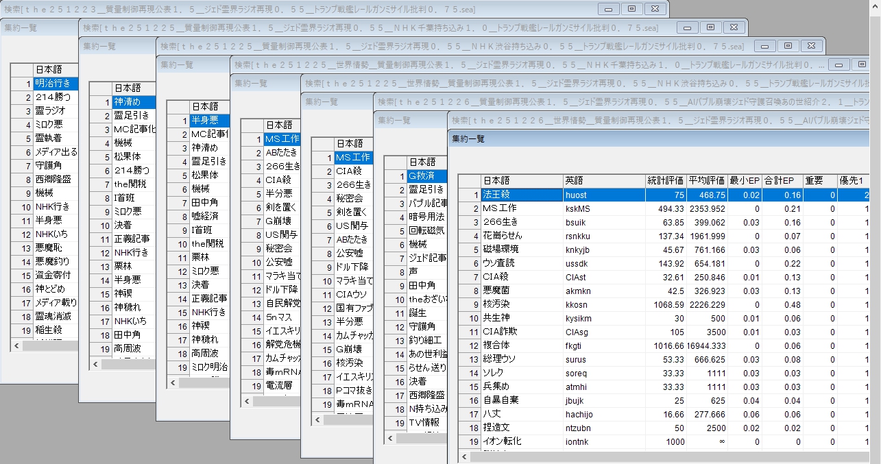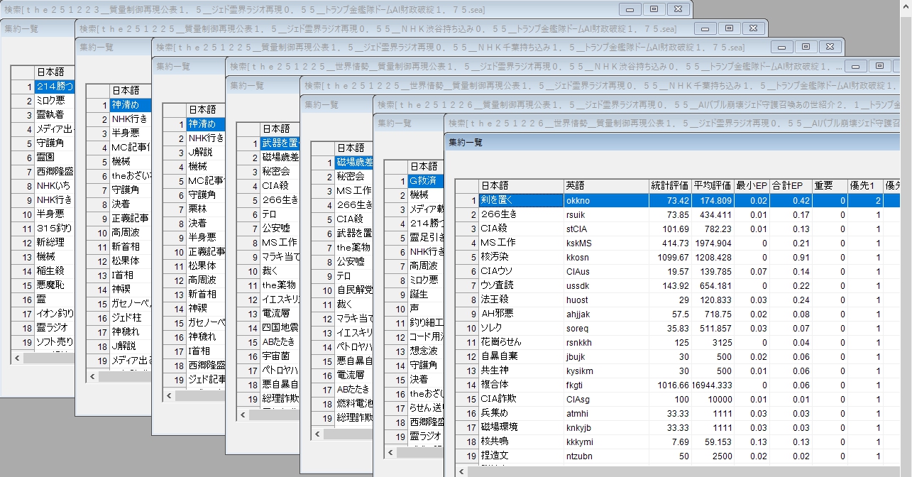 続きはこの記事を書くことを確認した、暗号解析のデーターです。結果をイラストに、データーは以下です。記事を書かなくても、記事を書いても、レールガンとミサイルの技術面の批判だけでは、25日と26日に霊に足引かれる部分が改善しないのでした。レールガンの批判に加えて、ゴールデンドームとAIのスターゲートへの過大な投資こそが、財政を破綻させるという記事を書かせたかったと、この結果から分かるのでした。