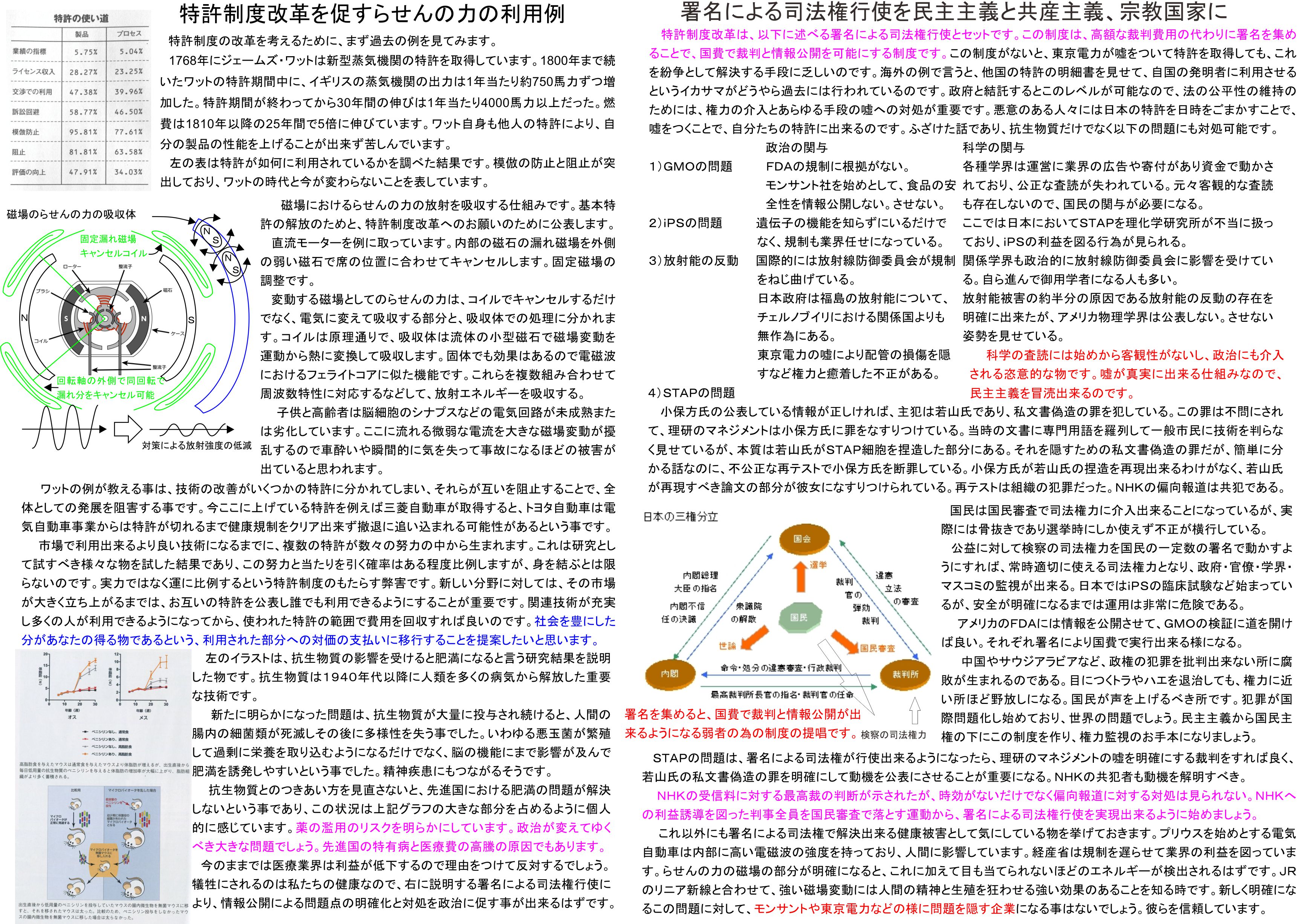 あとは署名による司法権行使も必要であり、個人が大企業を相手に不当な行為を訴えられるようにすることもまた必須でしょう。これは個人で訴える内容に応じてですが、例えば署名を1万件集めたら、国費で情報公開の裁判をするという仕組みです。個人を弱者として踏みにじっている今の仕組みを変えないと、トヨタの誤動作隠しに代表される様な資本の嘘、広告宣伝費の宗教による支配がなくならないのであり、強者から弱者までが共存出来る民主主義の基礎になるでしょう。