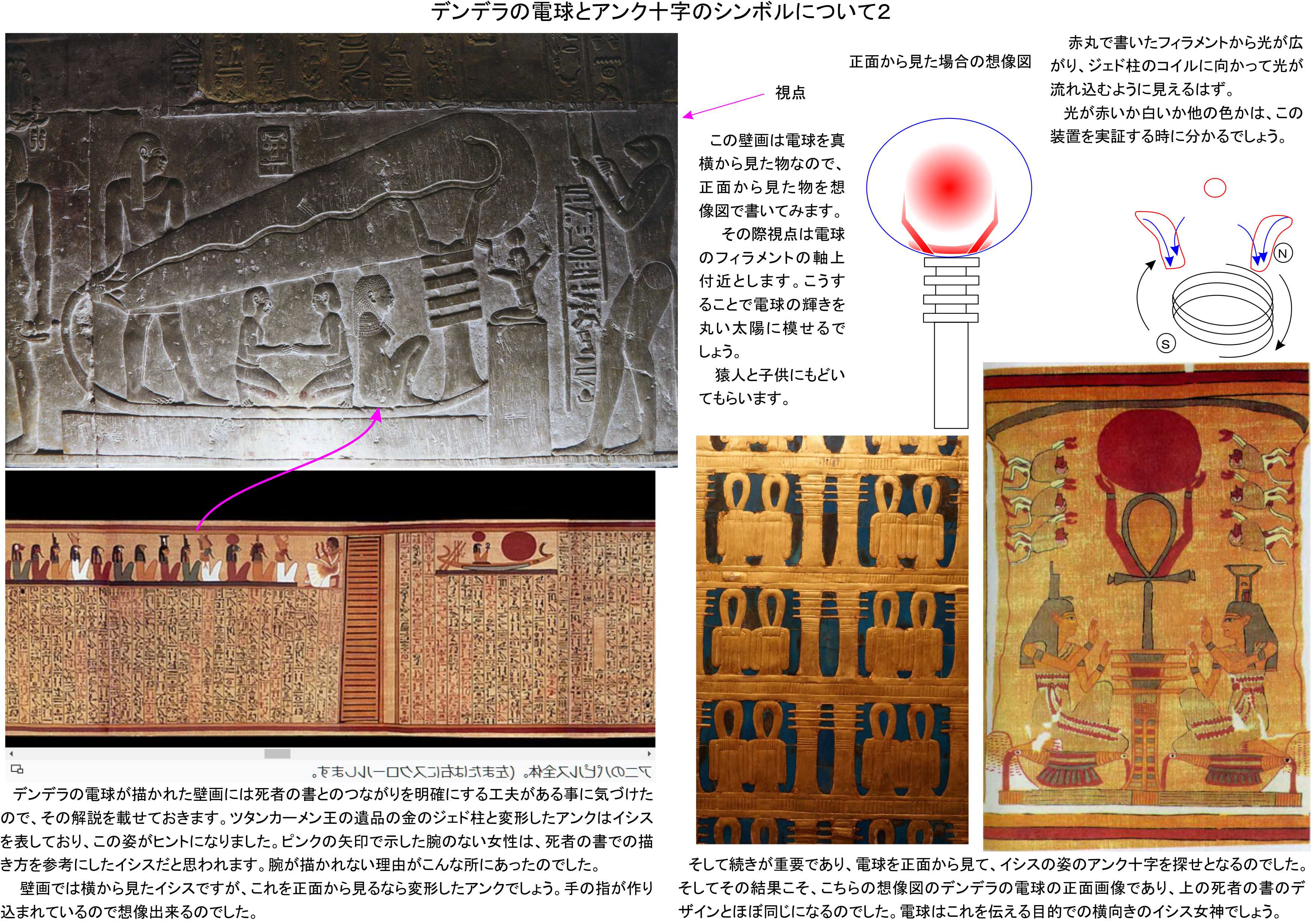 3)エジプトの壁画にはジェド柱と呼ばれる装置が2つほど描かれており、その科学が理解できたことで、有名なデンデラ電球を光らせる仕組みを明らかに出来ている。もう一つがアビュドス神殿に描かれている霊界ラジオだが、この再現にはあの世側の協力が必須なので、現時点ではあの世側の悪に邪魔されて動かせていないと思われる。