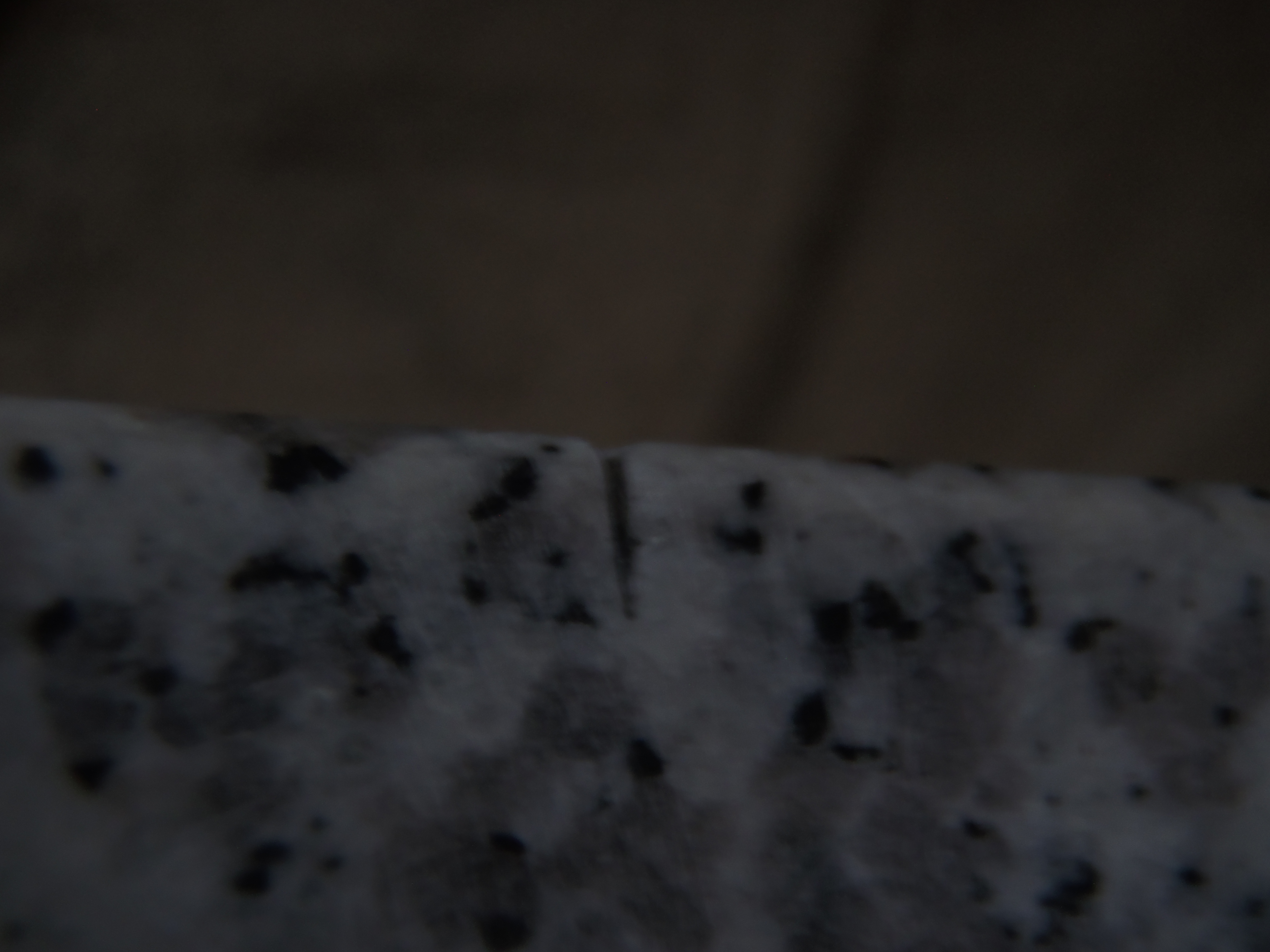 包丁の切り込みの深さは深い部分で3mmくらい、長さは1cmもないでしょうが、イラストの通りに包丁が花崗岩に食い込んだ様子を、包丁が自然にはさまるほどのレベルで加工出来ているのでした。