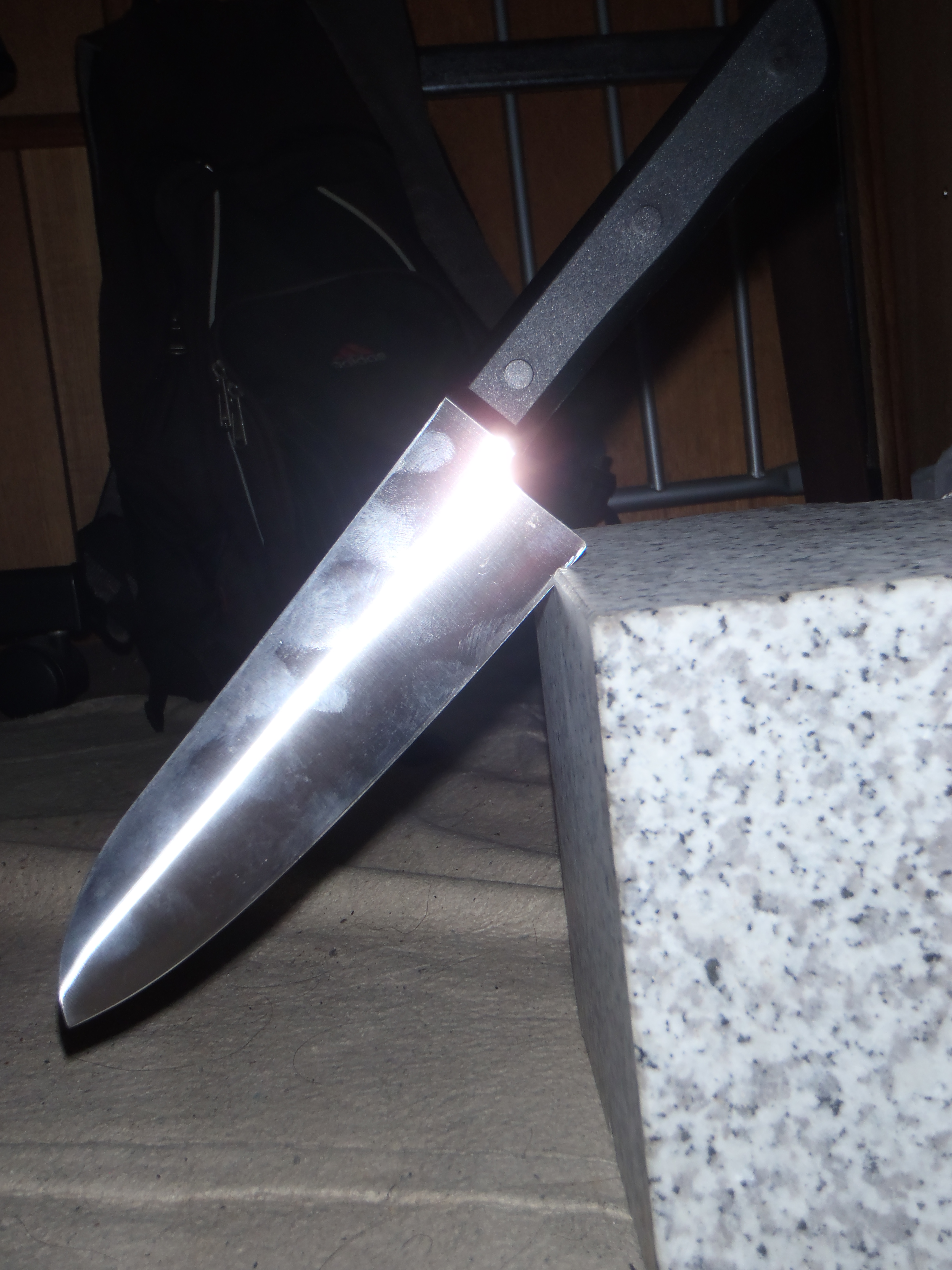 絵も問うは、こちらのHPに乗せた加工の様子だとします。三徳包丁が花崗岩に食い込んでいる絵柄は一般に受けるかと思っています。ここではステンレスですが銅でも大差無しのはずです。