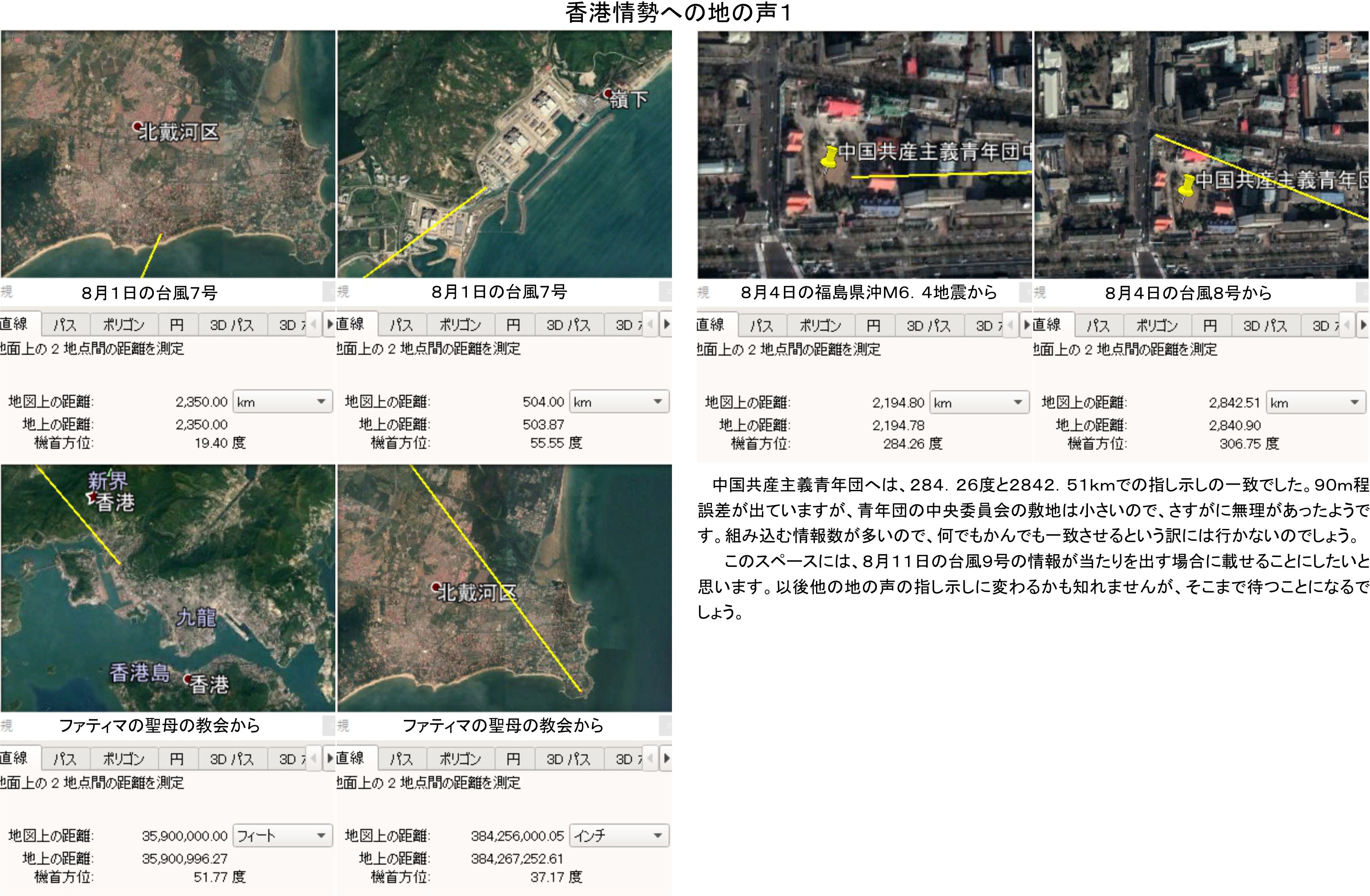 このHPに載せている情報は、香港の現場と北京の政治闘争の現場で起きる現実よりも、遅れています。現場の判断は現場の情報を重視すべきです。この種の自然の情報も、時間が立てば立つほどに、現地で処理が出来る様になるでしょう。今はこちらが行っているだけですが、現地の人々が自分に向けられる情報を解析する方が、より詳細に分かる解析になることは明確です。
