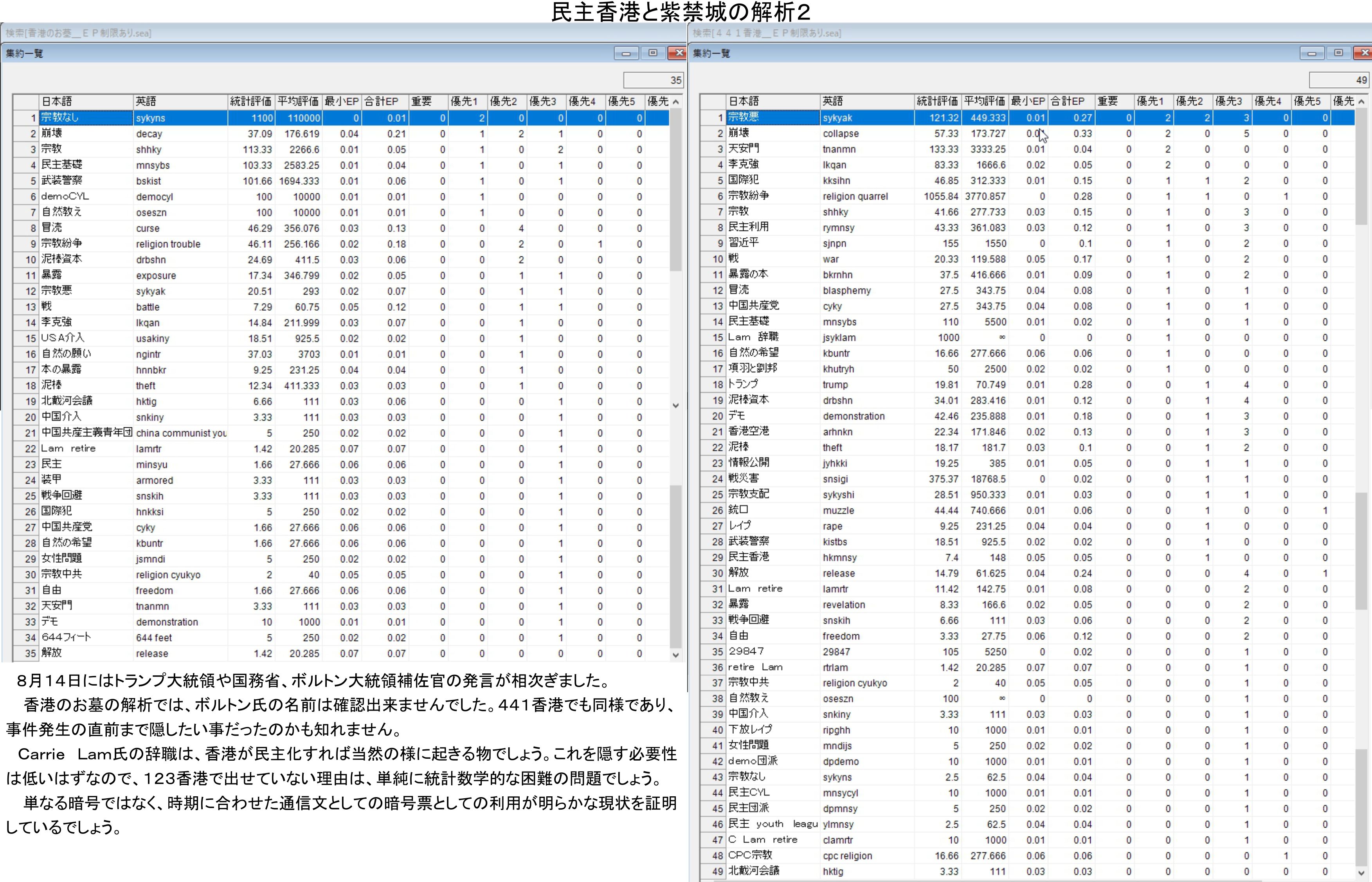 123香港の暗号通信文としては、香港行政長官辞任も、ボルトン氏の介入も上位に含まれています。