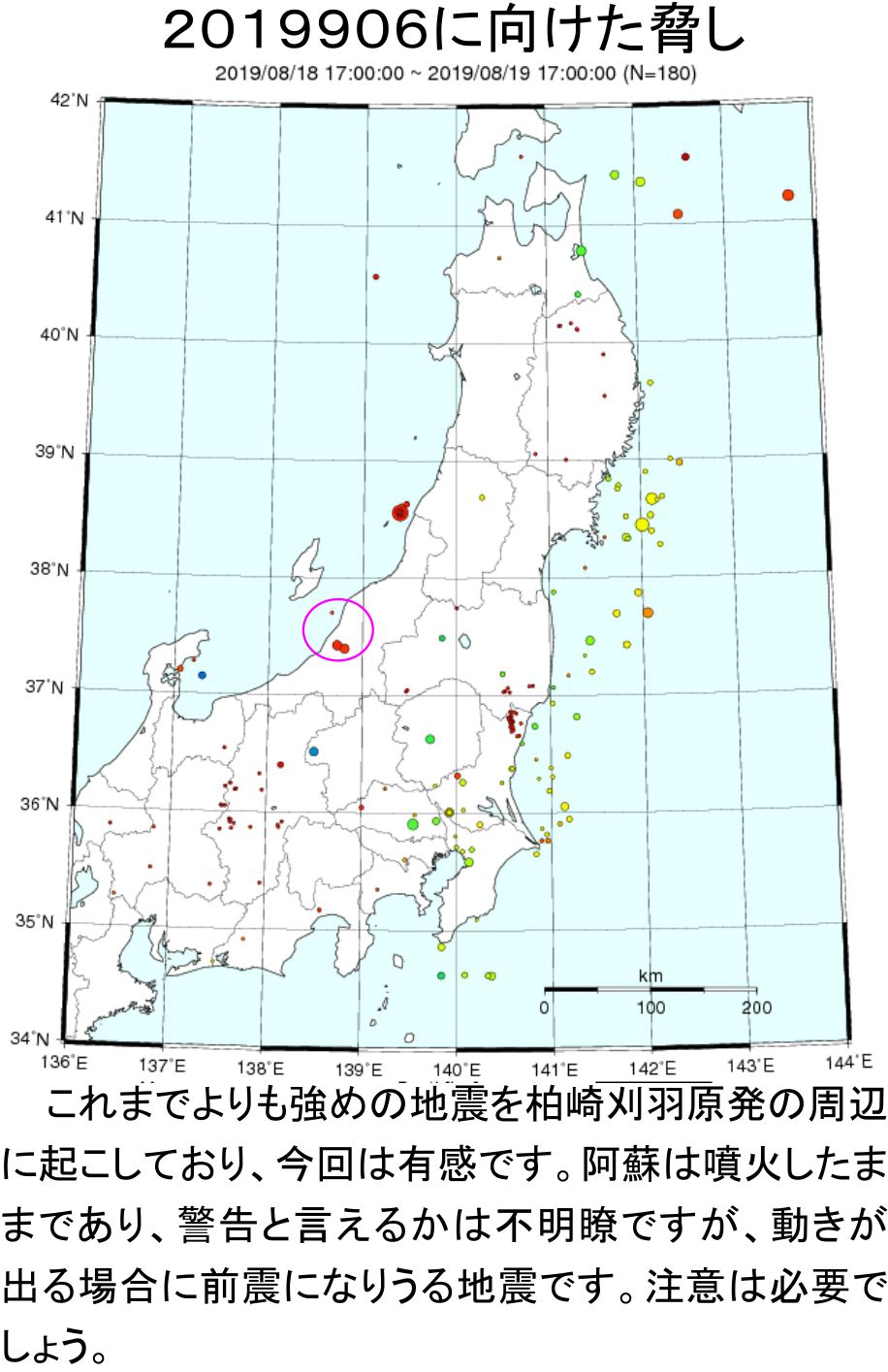 過去を考えると動かす可能性は低いですが、また柏崎刈羽原発の周辺に地震を起こしています。少し強めなので注意の喚起もしたいと思います。