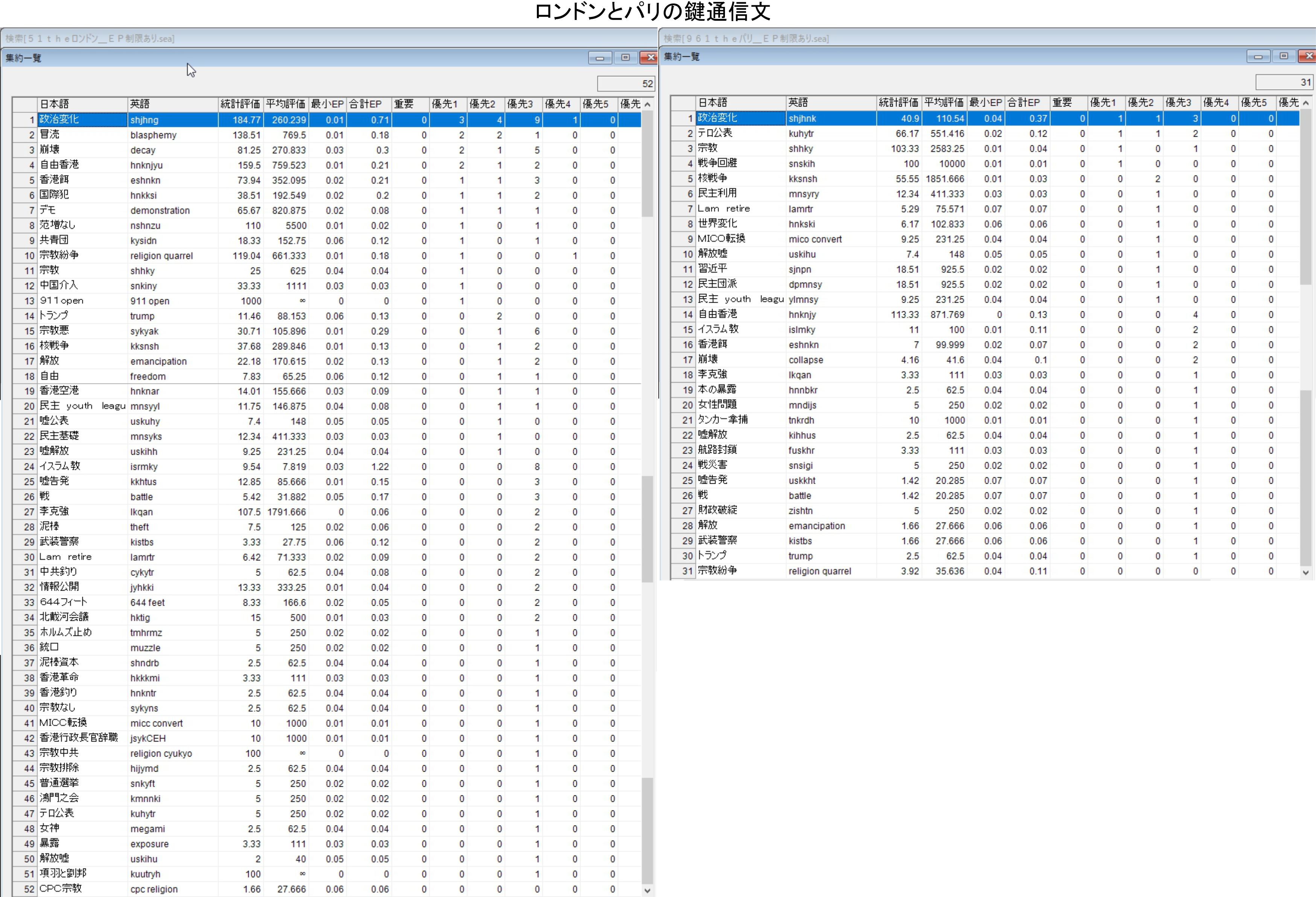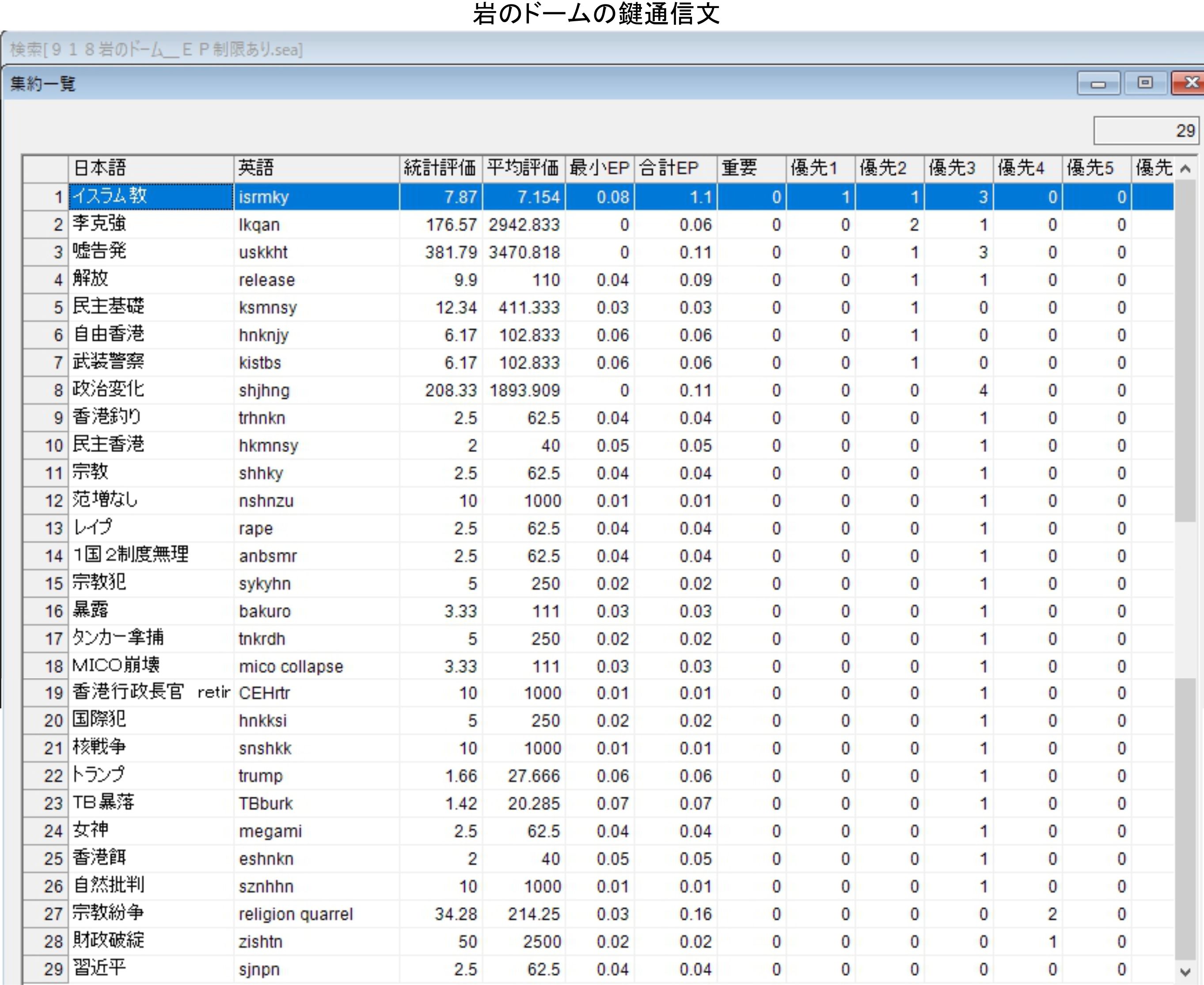 1,政治変化 2,冒涜 3,崩壊 4,自由香港 5,香港餌