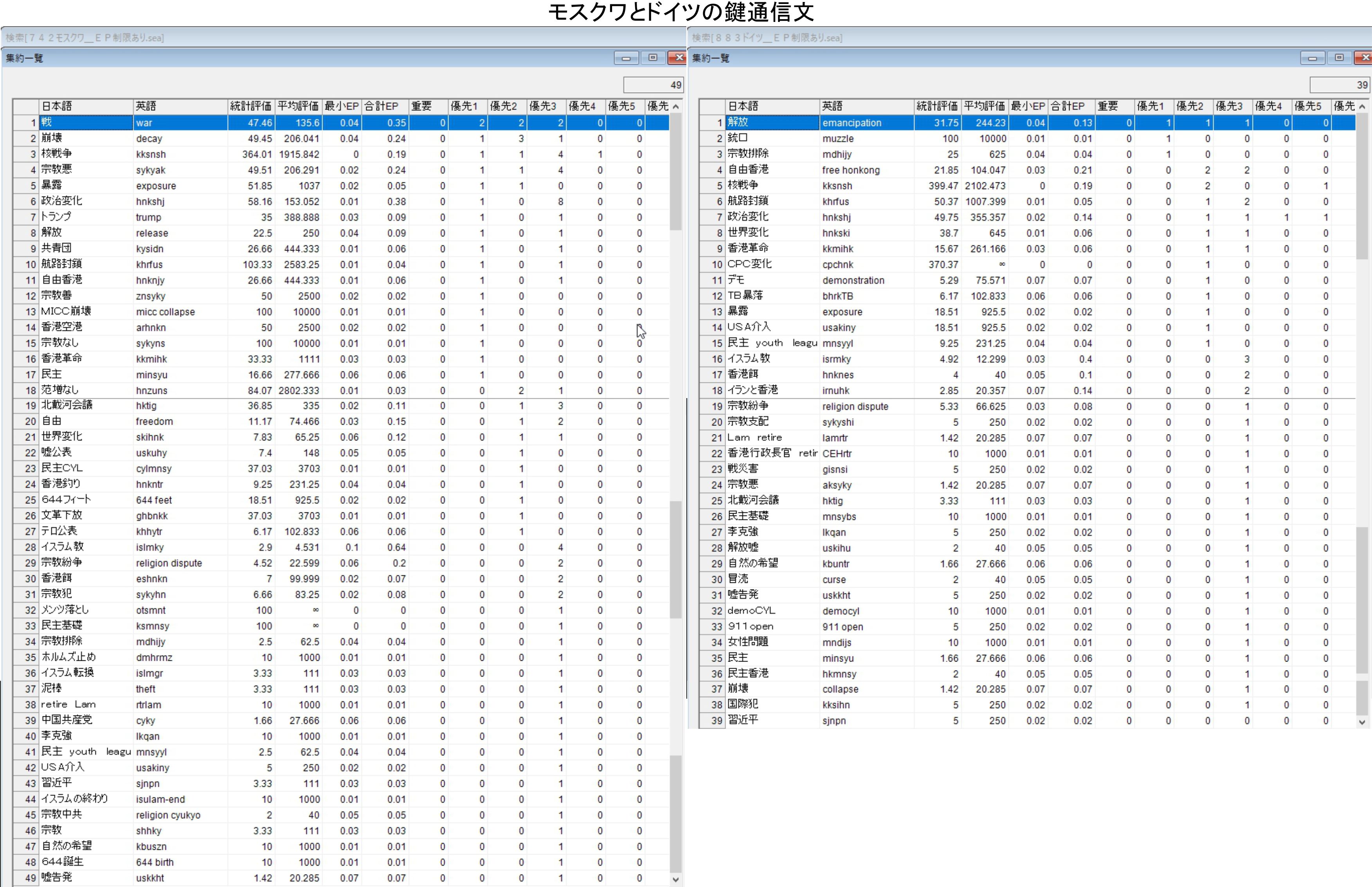 1,解放 2,銃口 3,宗教排除 4,自由香港 5,核戦争