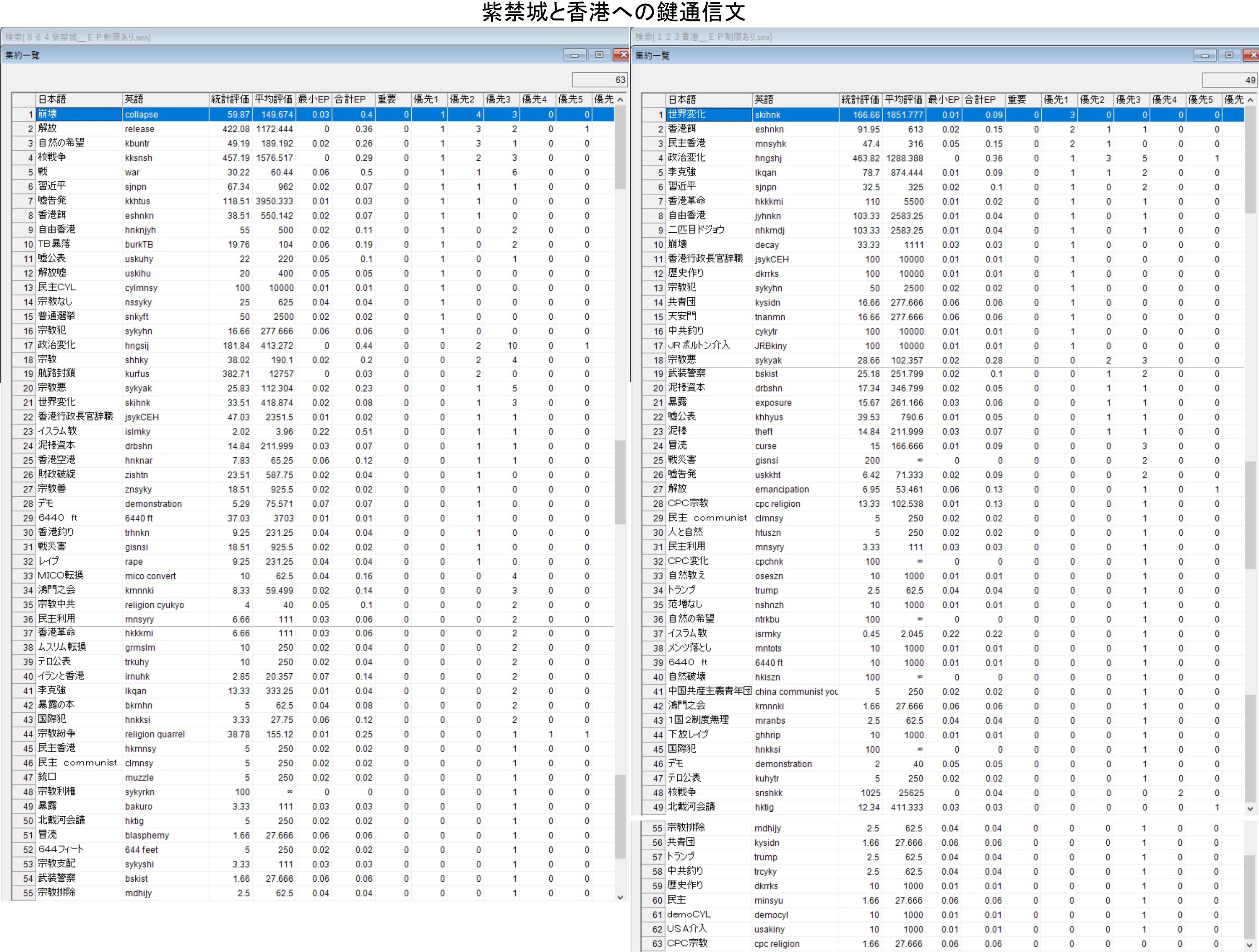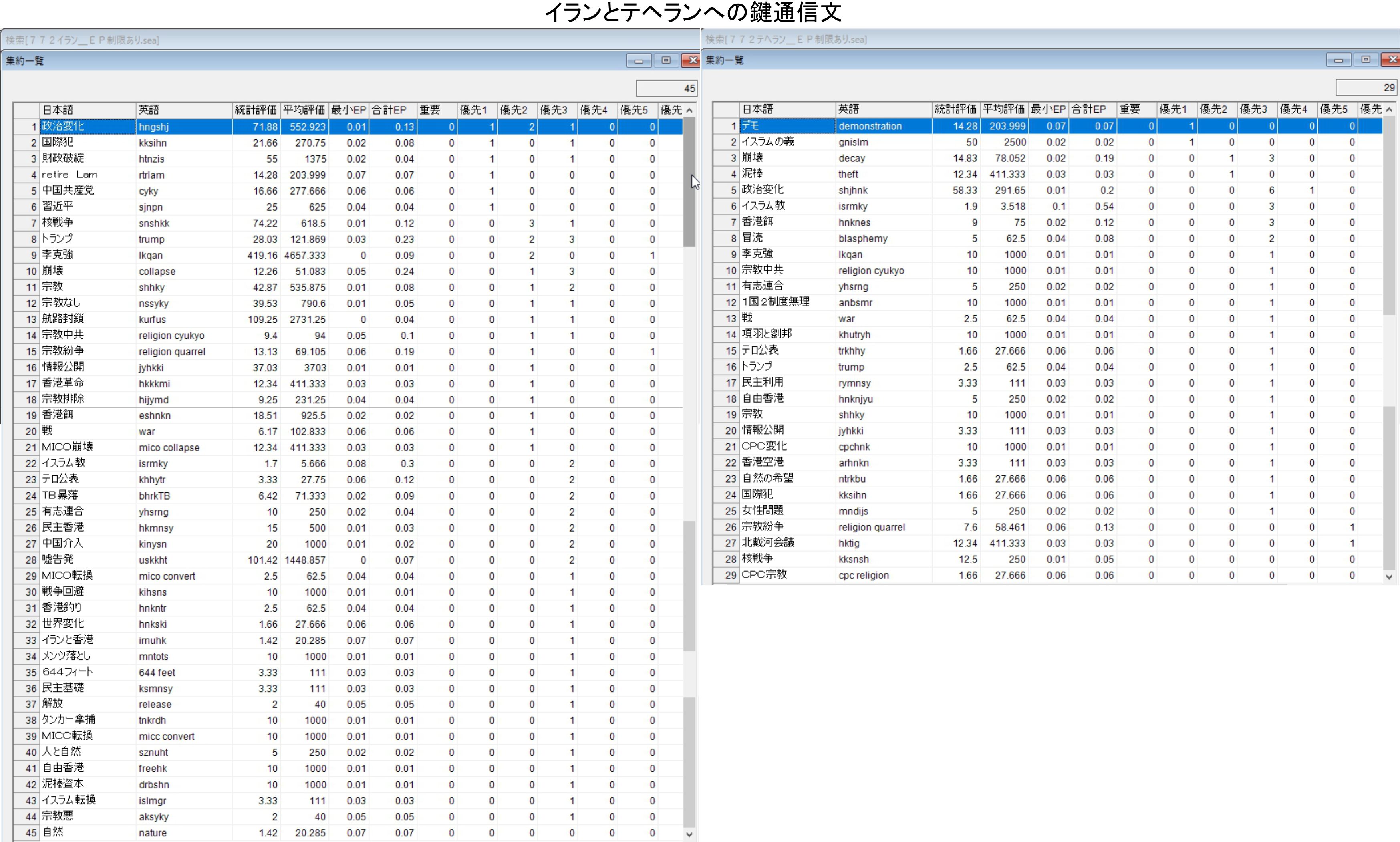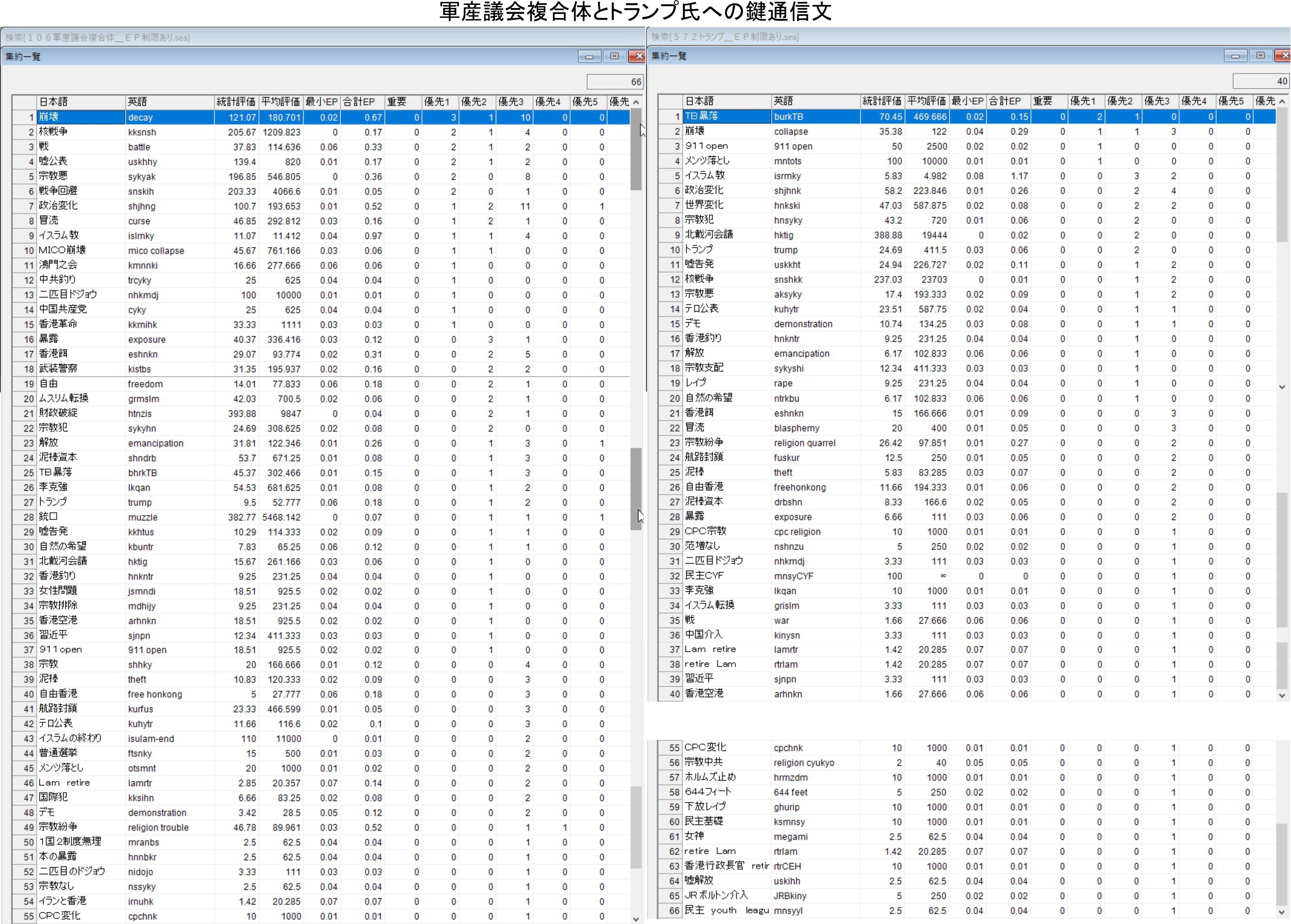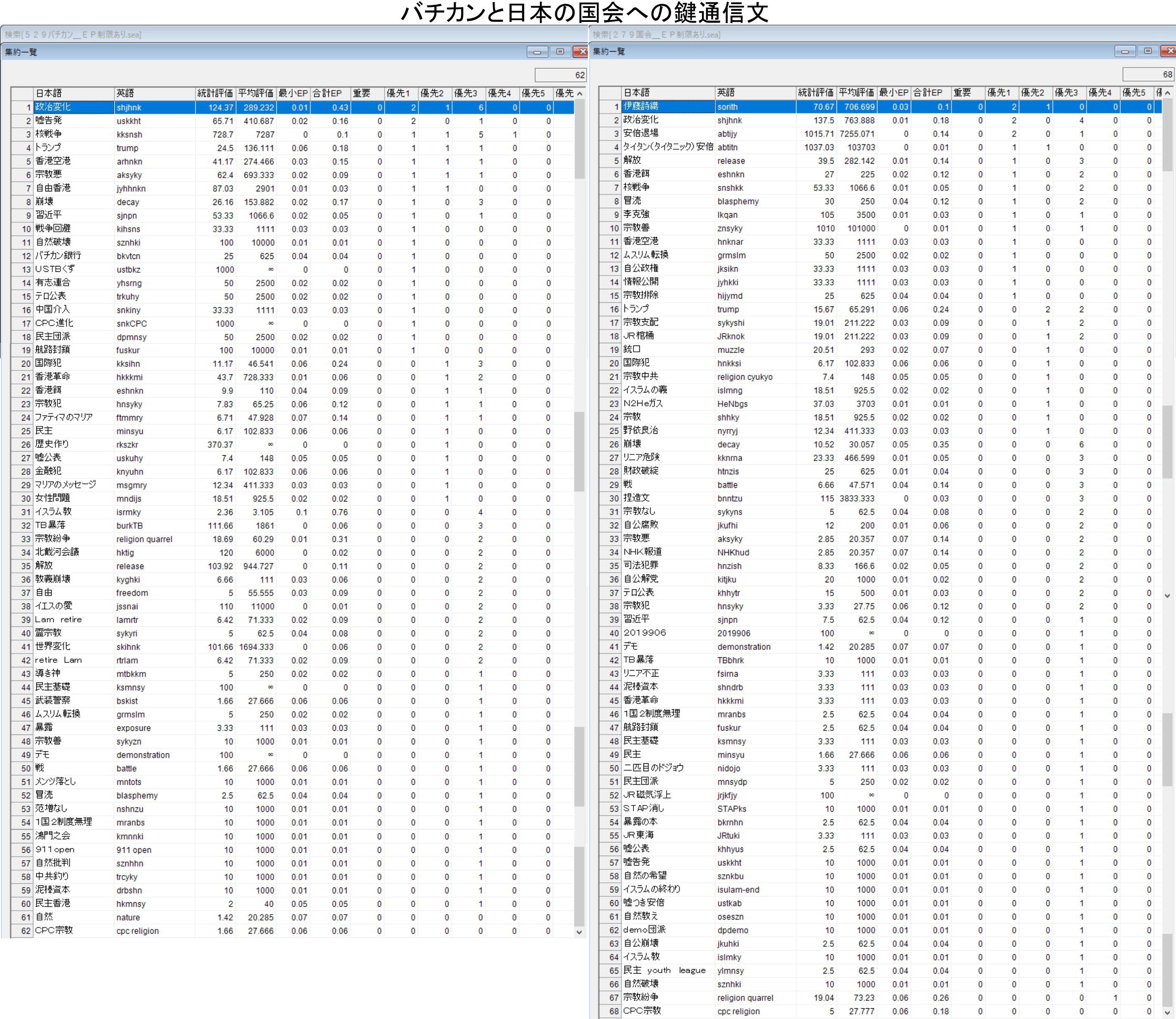 愛知には2番目に暗号表を組み込んでくれています。言葉として上位に来やすいので、日本の国会との比較を行っています。国会の解析が二つ出してありますが、作業の都合で最後に愛知の解析を思いついたのでこの姿です。