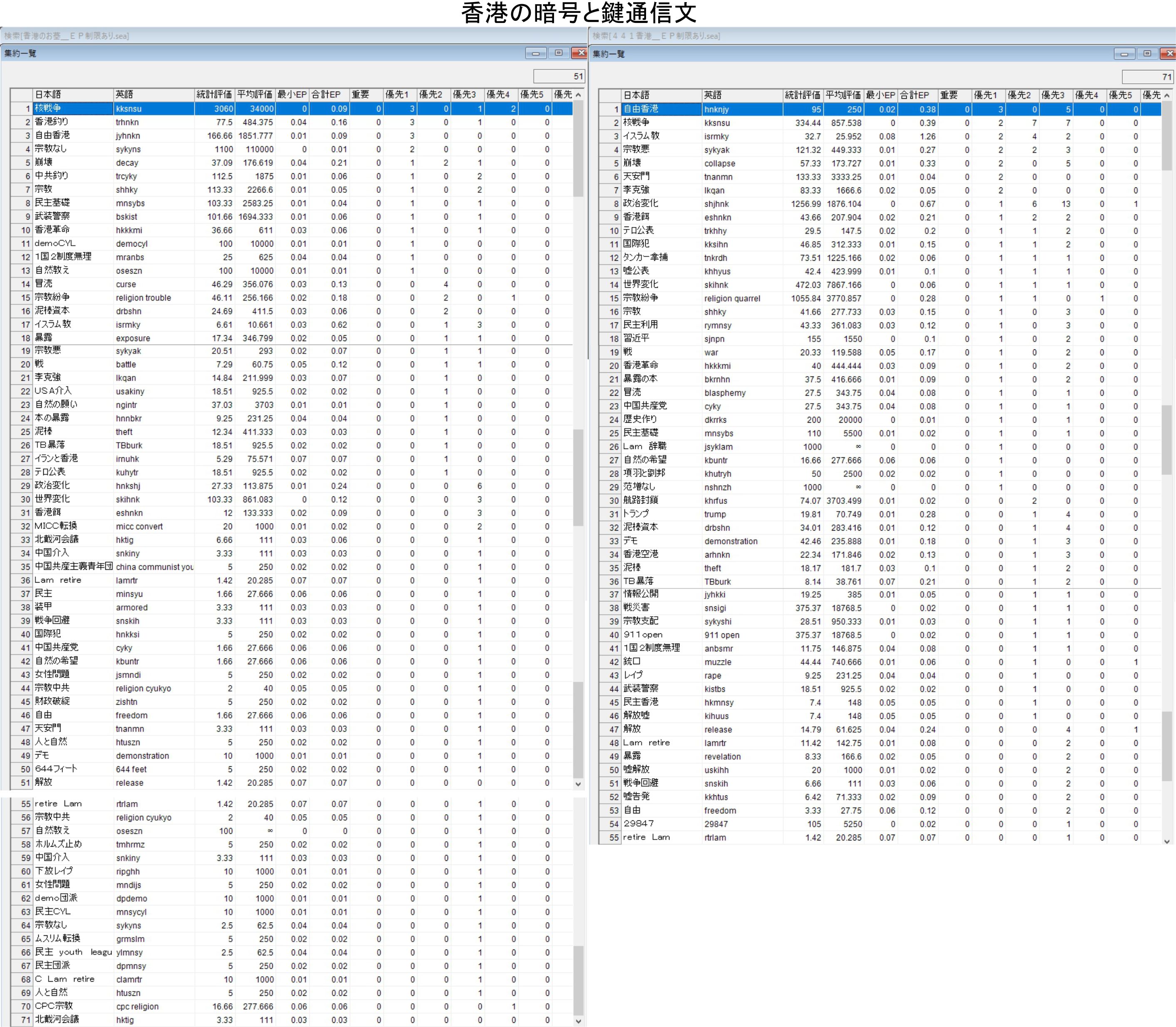 暗号表としては、香港を餌にして中国共産党を釣るとなるので、平和に流れれば民主化して今以上の自由を取り戻せるでしょう。今の時点で中国共産党を崩壊させるのは、習氏を始めとした共産党幹部達の腐敗問題でしょう。