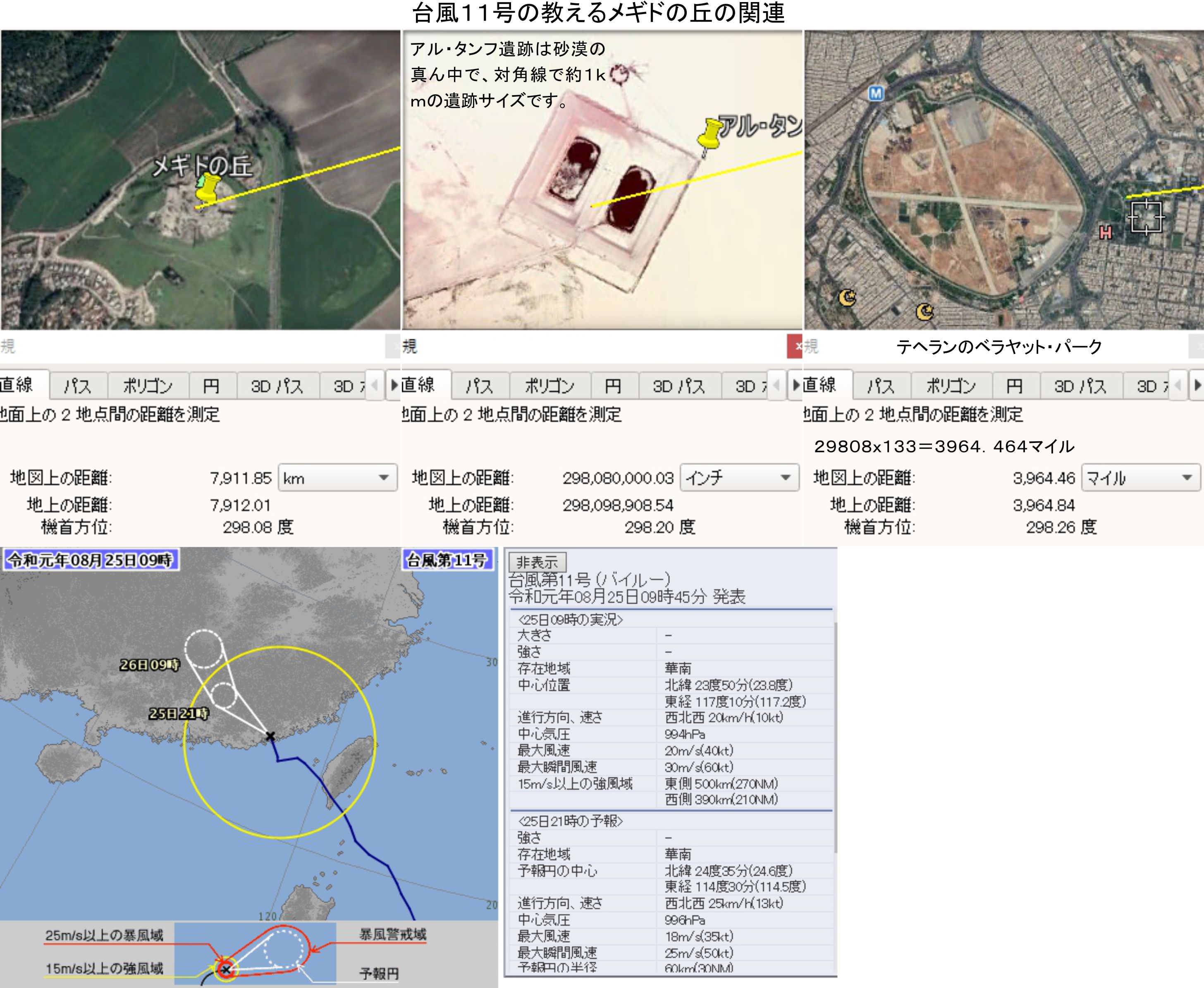 さらに続きがあって、いわき市の崖崩れの場所と皇居を角度で重ね、距離では444を組み込んでおり、8月24日深夜の崖崩れは俺たちのヤラセであると主張しているのです。