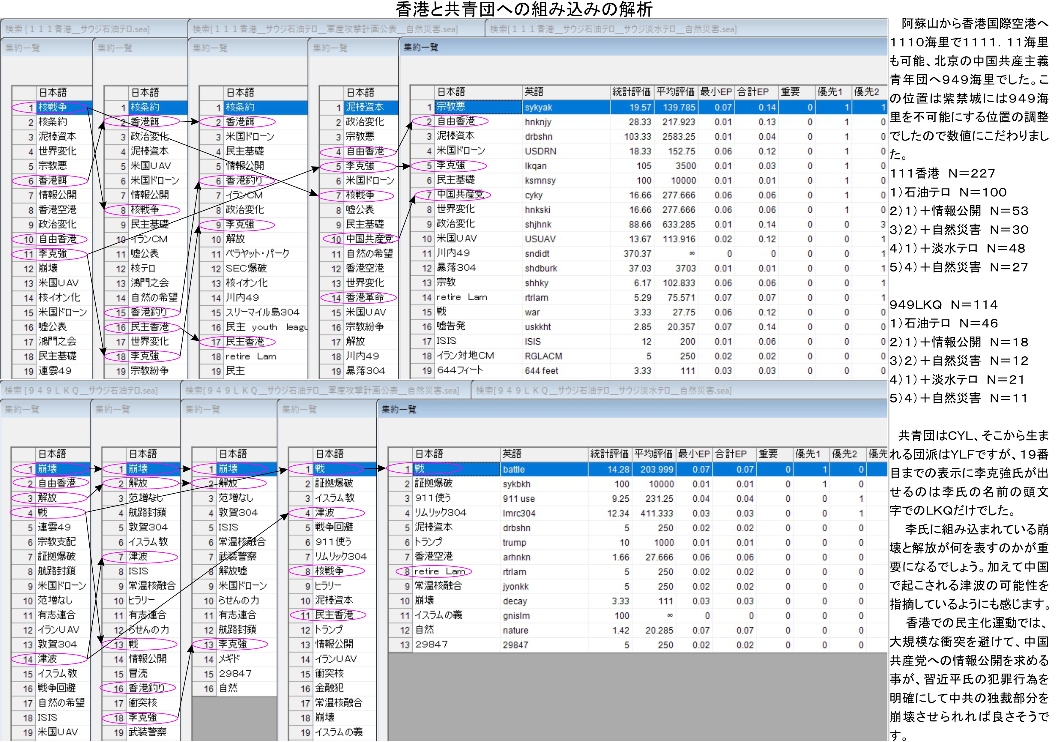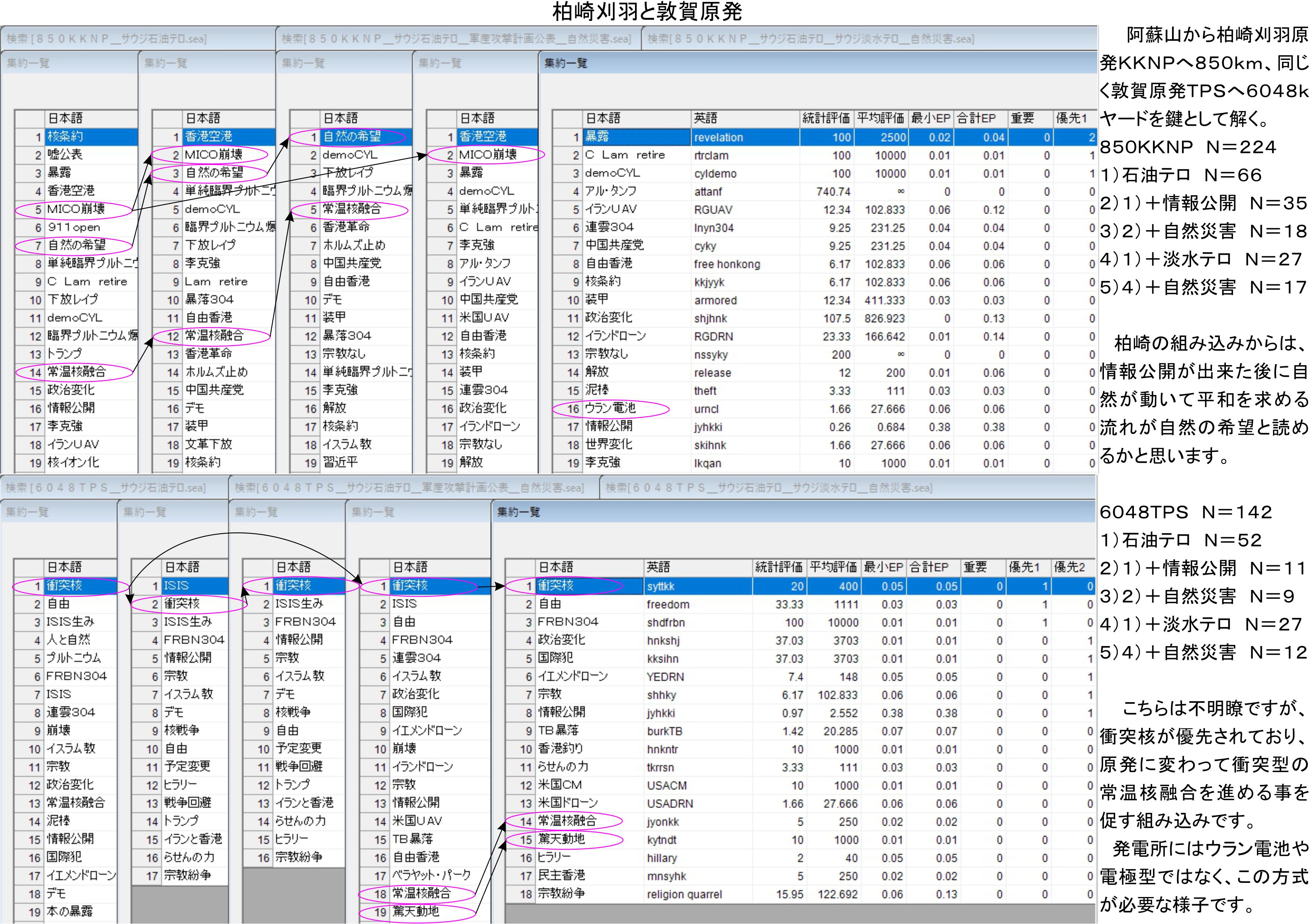 2019927と928に向けて、双方の陣営で何が出来るかの勝負でしょう。巡航ミサイルの発射を止める可能性を検討したところ、ここに阿蘇山の組み込みがあり、意図した導きの可能性が高いでしょう。これに従い状況の公表です。