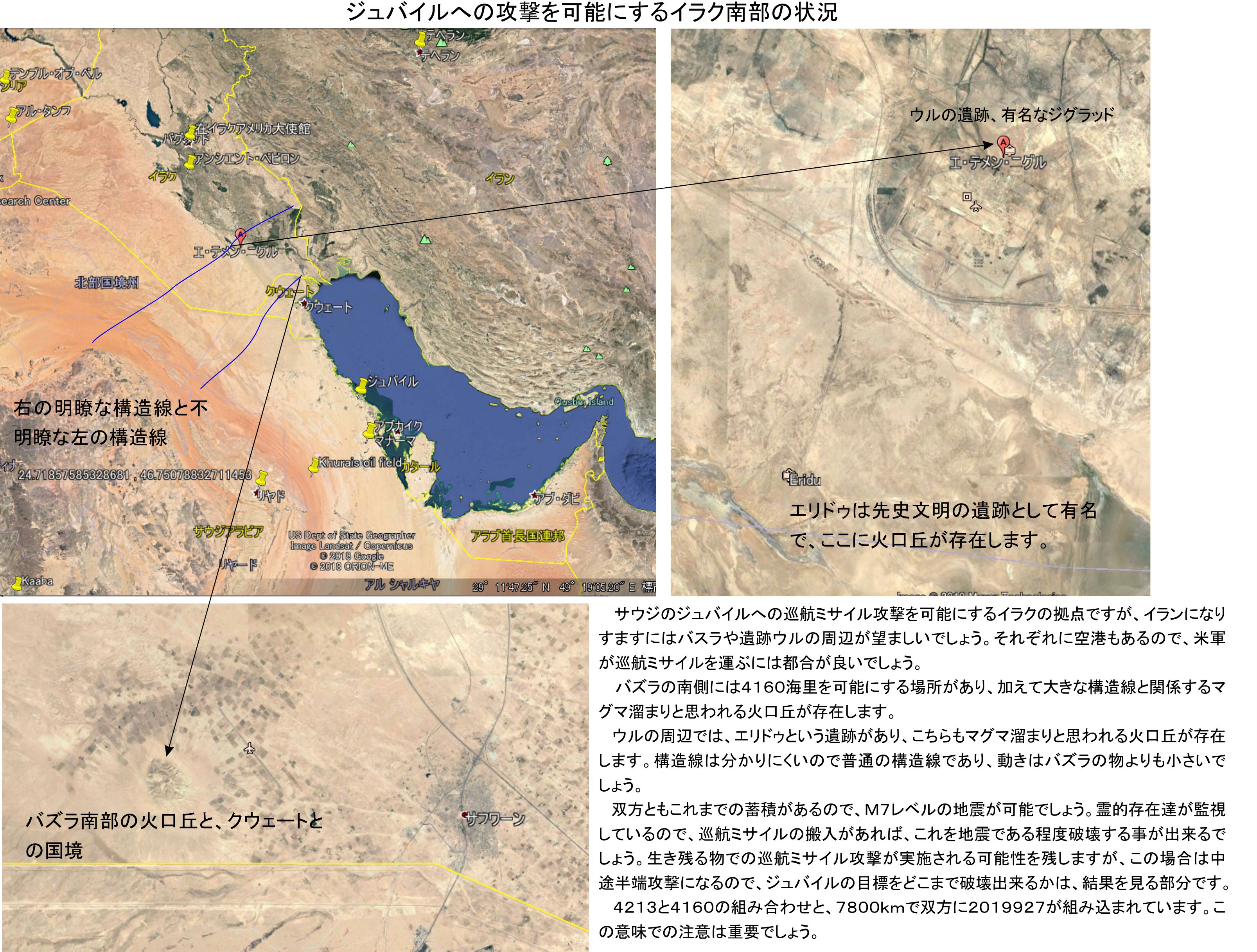 ジュバイルとリヤドの王宮への牽制は明確です。しかも2019927と2019928に分けており、準備に時間をかけて選んだ場所での地震による警告でしょう。