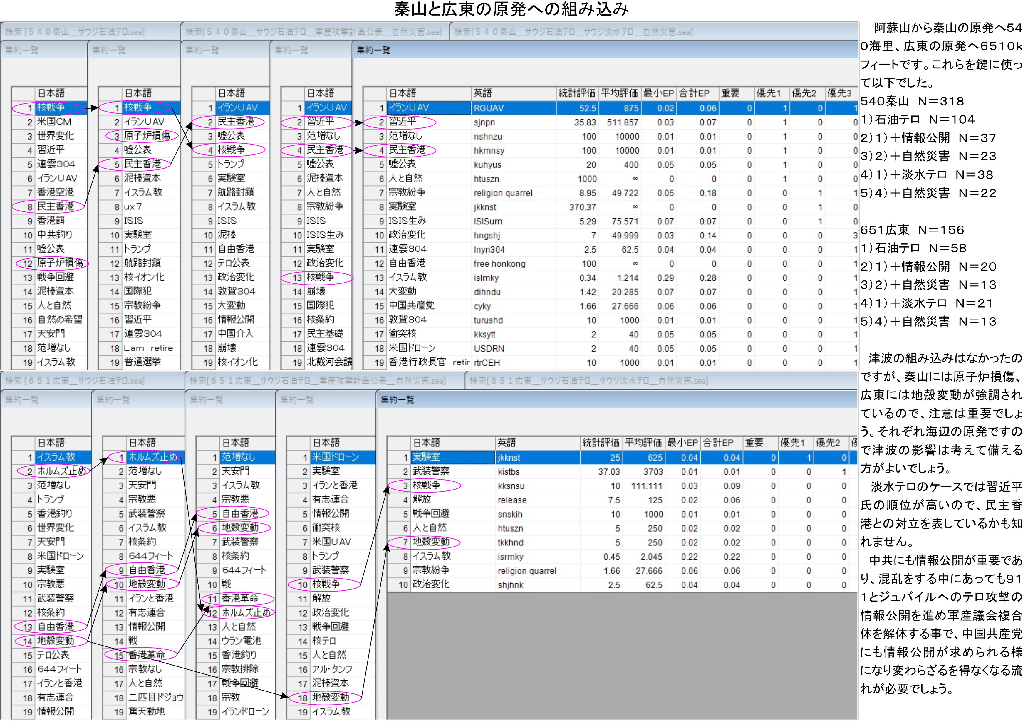 地の声側はずれありですが日時も組み込んでいます。加えて60.2度の組み込みではヤラセが上位に出てきており、偶然ではないという部分を明確にしているでしょう。
