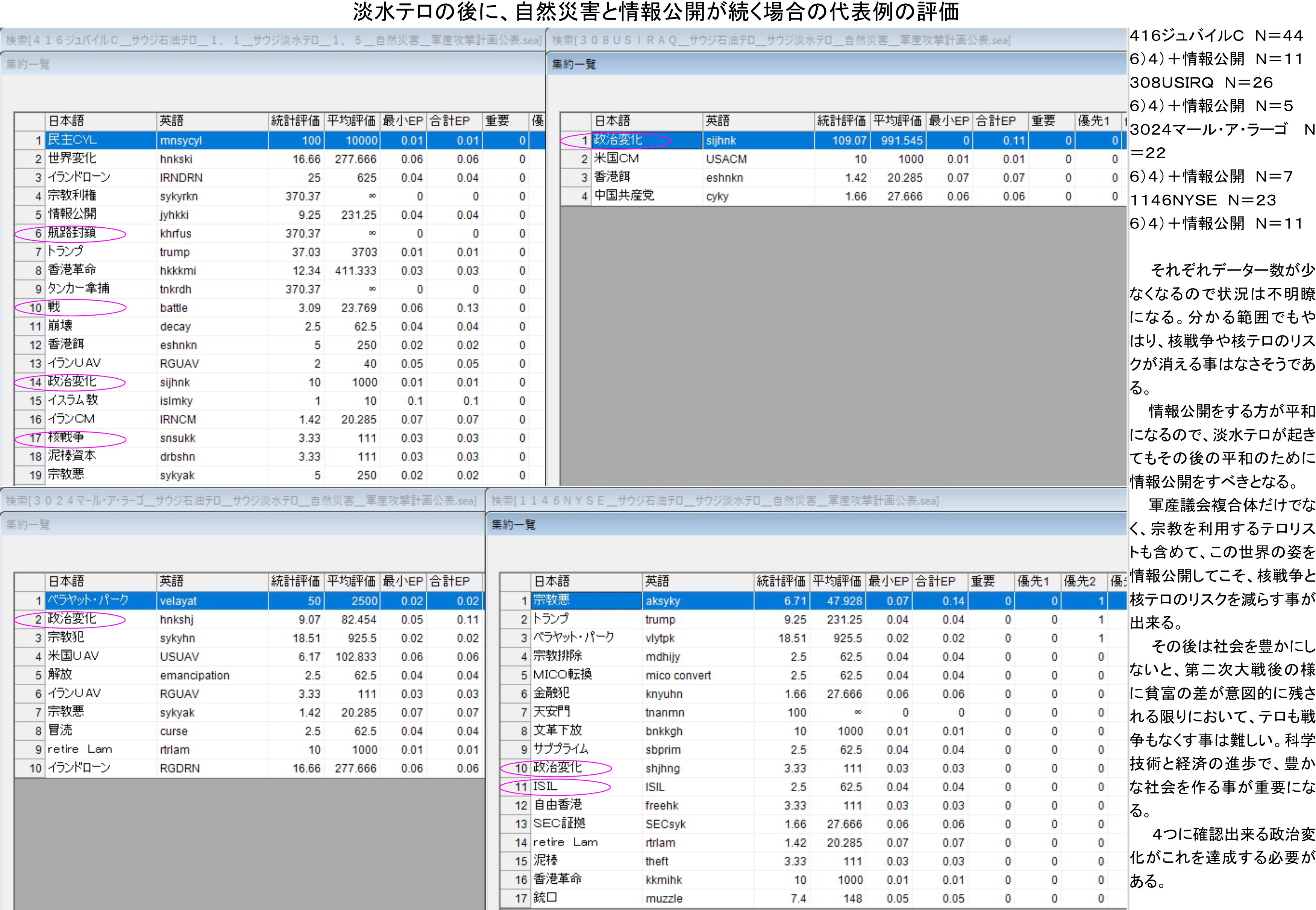 4)サウジ石油テロに加えて、軍産攻撃計画公表と自然災害でフィルター処理、N=11