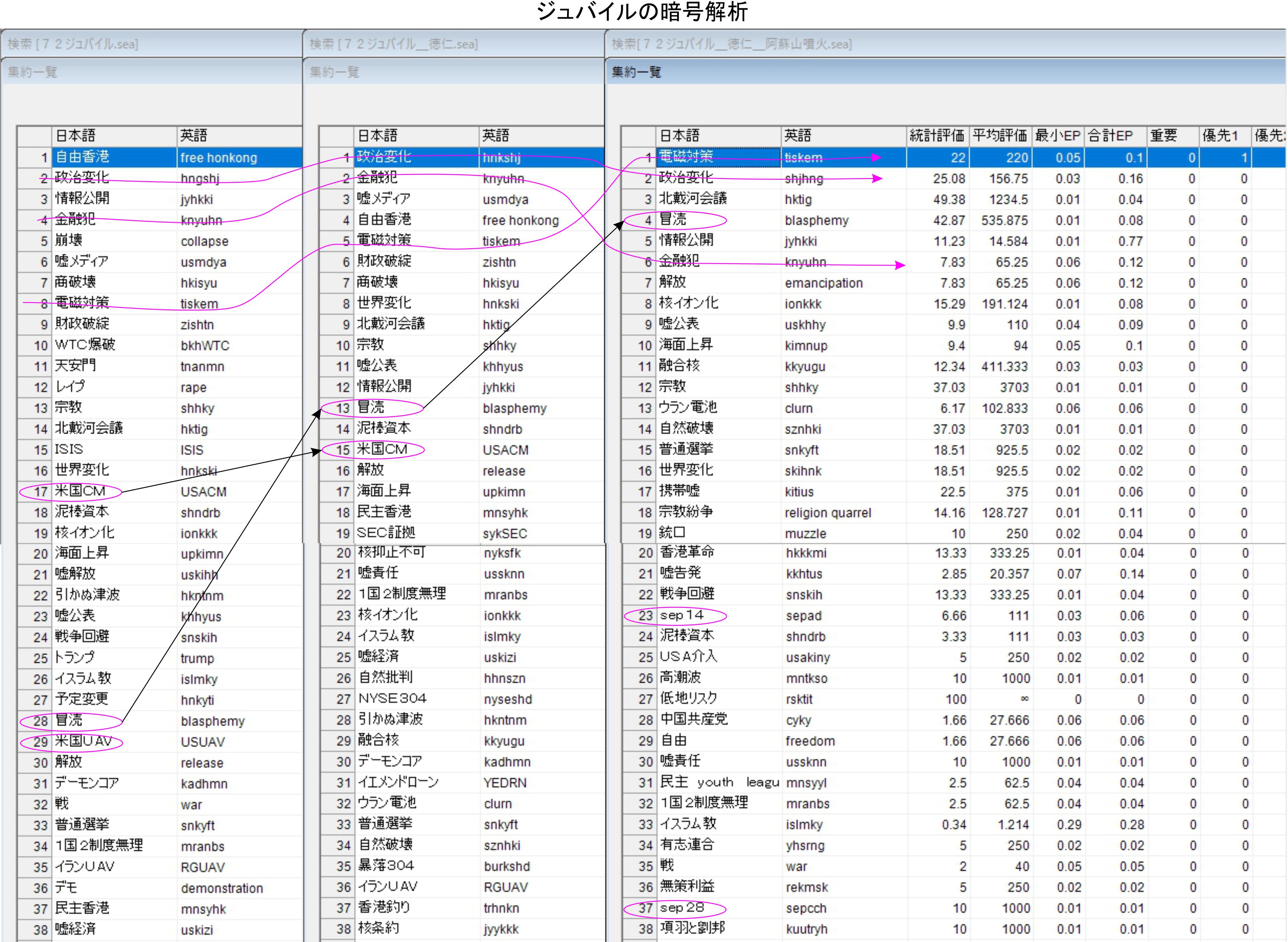 ここまでの結果としては、暗号通信文だけでなく、本来の未来の計画情報としても組み込みの存在をある程度確認出来ていると思います。過去である9月14日のアブカイクへの攻撃は探せば良いだけですが、未来にはたくさんの候補があるのでデーターがそこそこに存在しその中から当たる物が出るという状況だと思います。
