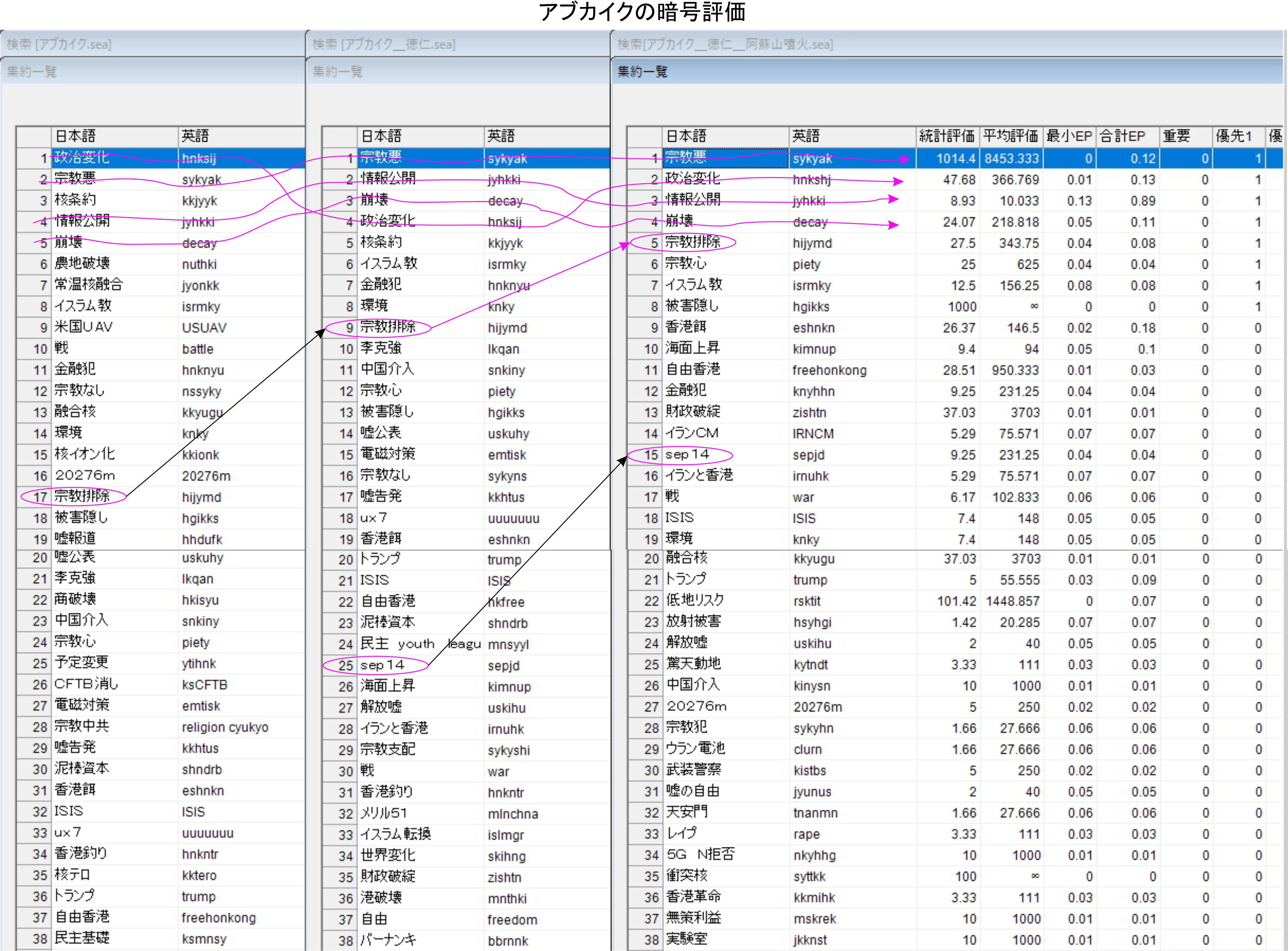 結果はイラストを参照下さい。徳仁様をフィルターとして後回しにすると、敦賀と柏崎刈羽原発の順位が上昇しない部分も確認済みです。2種類の組み合わせでこそ、敦賀と柏崎刈羽原発を強調する結果になるのでした。
