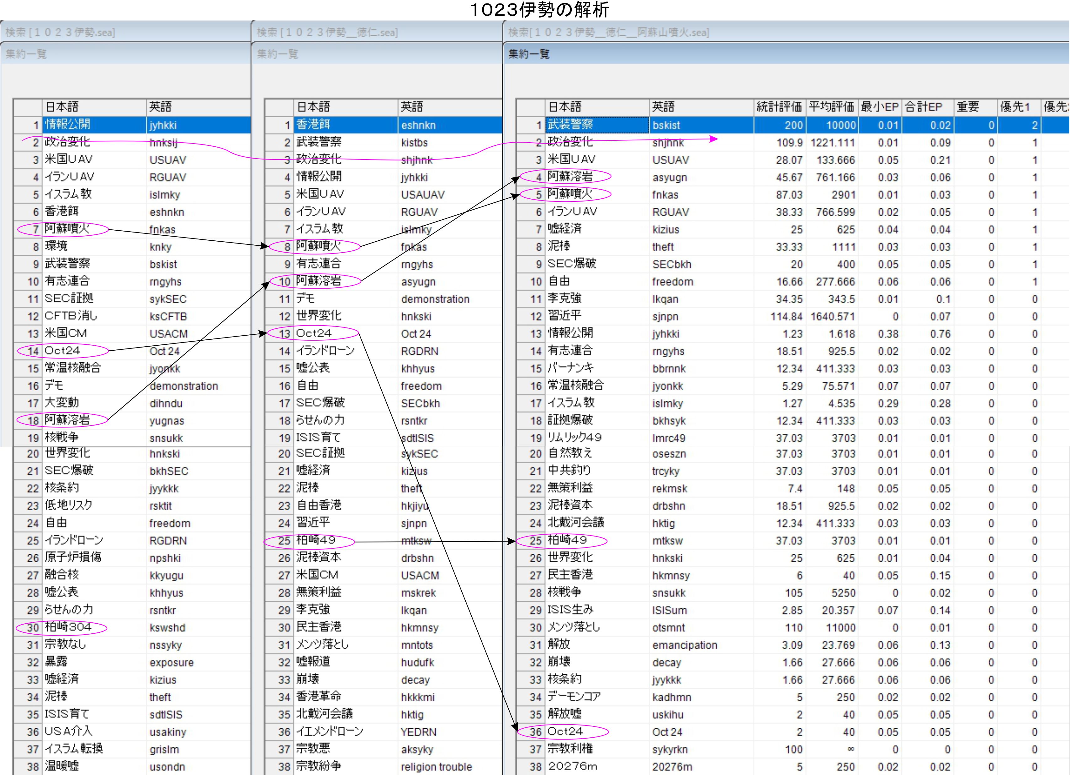 現状の徳仁様と阿蘇山噴火では、阿蘇噴火が上位に残りますがOct25は消えてしまいます。どうなるかはこれからですが、続きの作業が必要な状況でした。