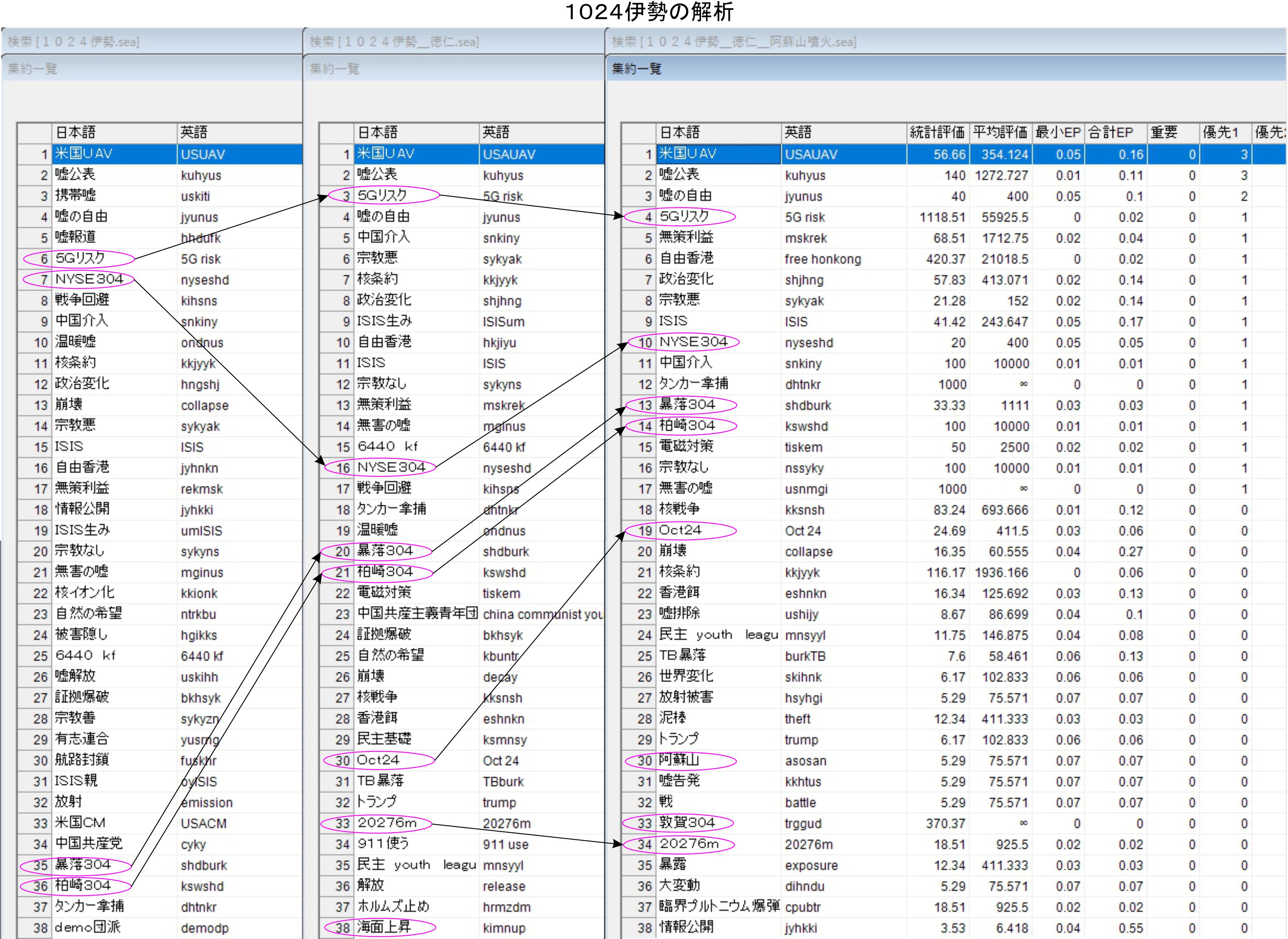 このイベントつながりは、他の同種データーの存在を示しており、既に調査済みの102x伊勢では役に立たないのでした。続きを調べて統計的に比較出来るところでやっと、その信頼度が上がるでしょう。