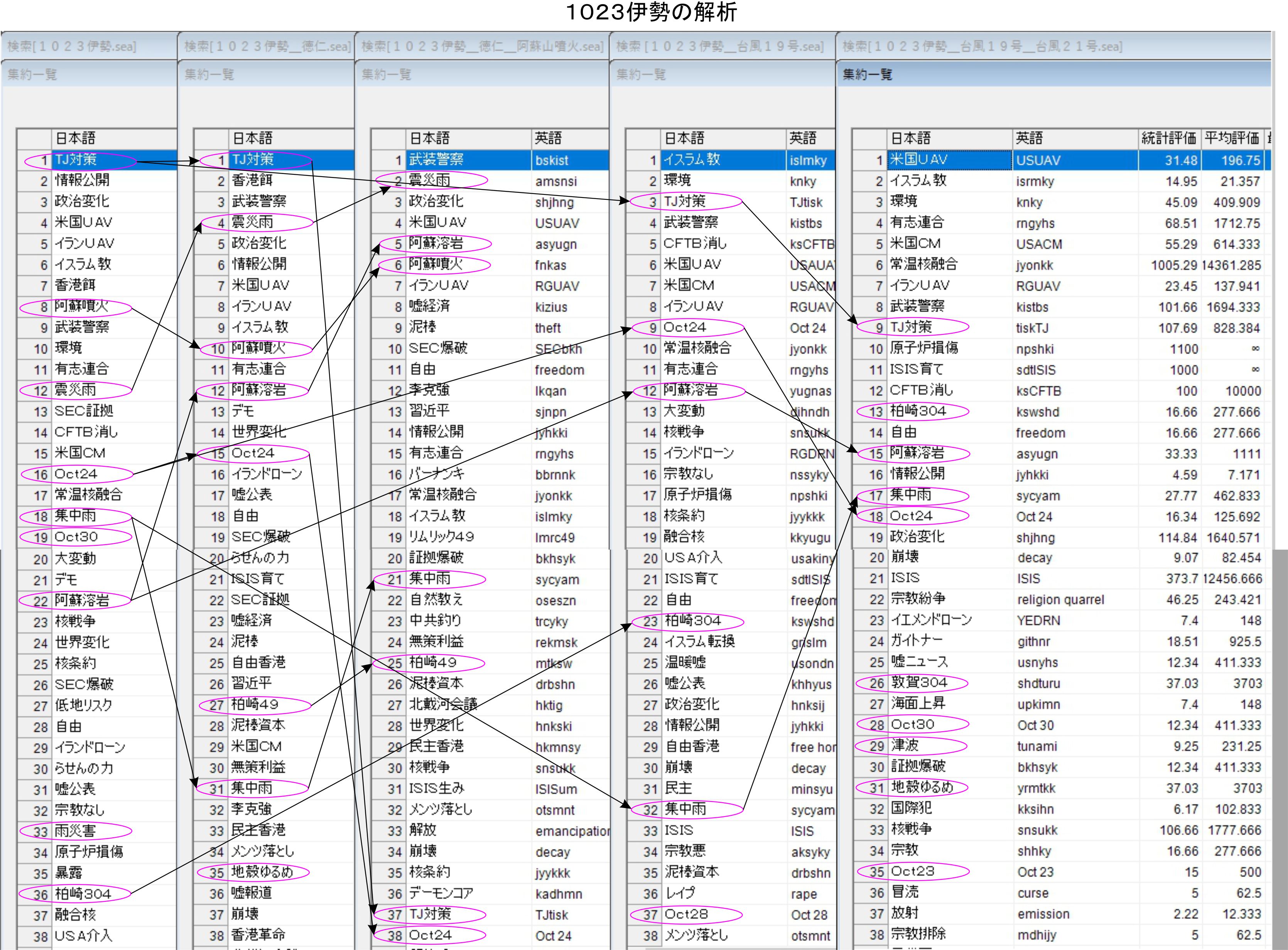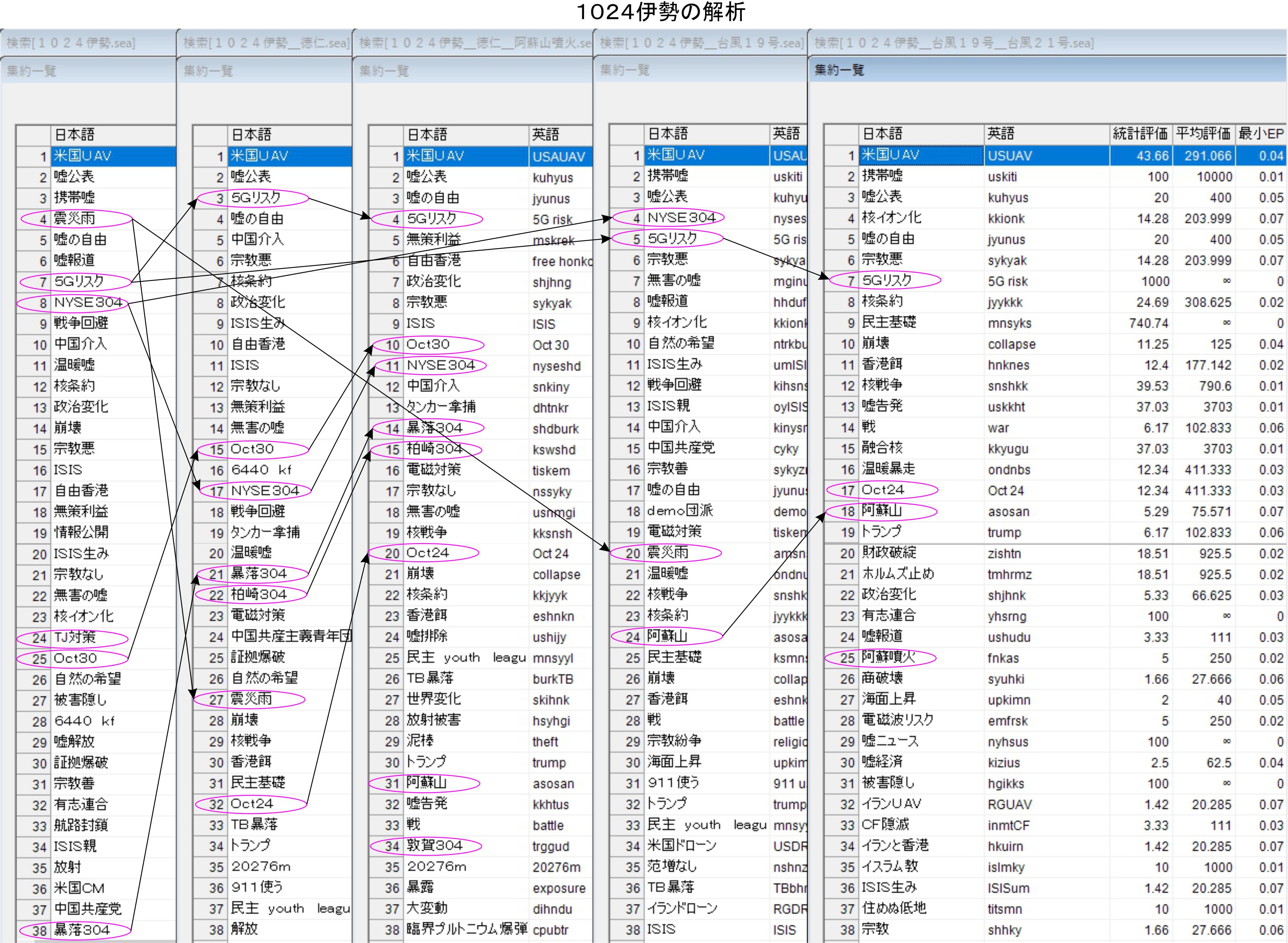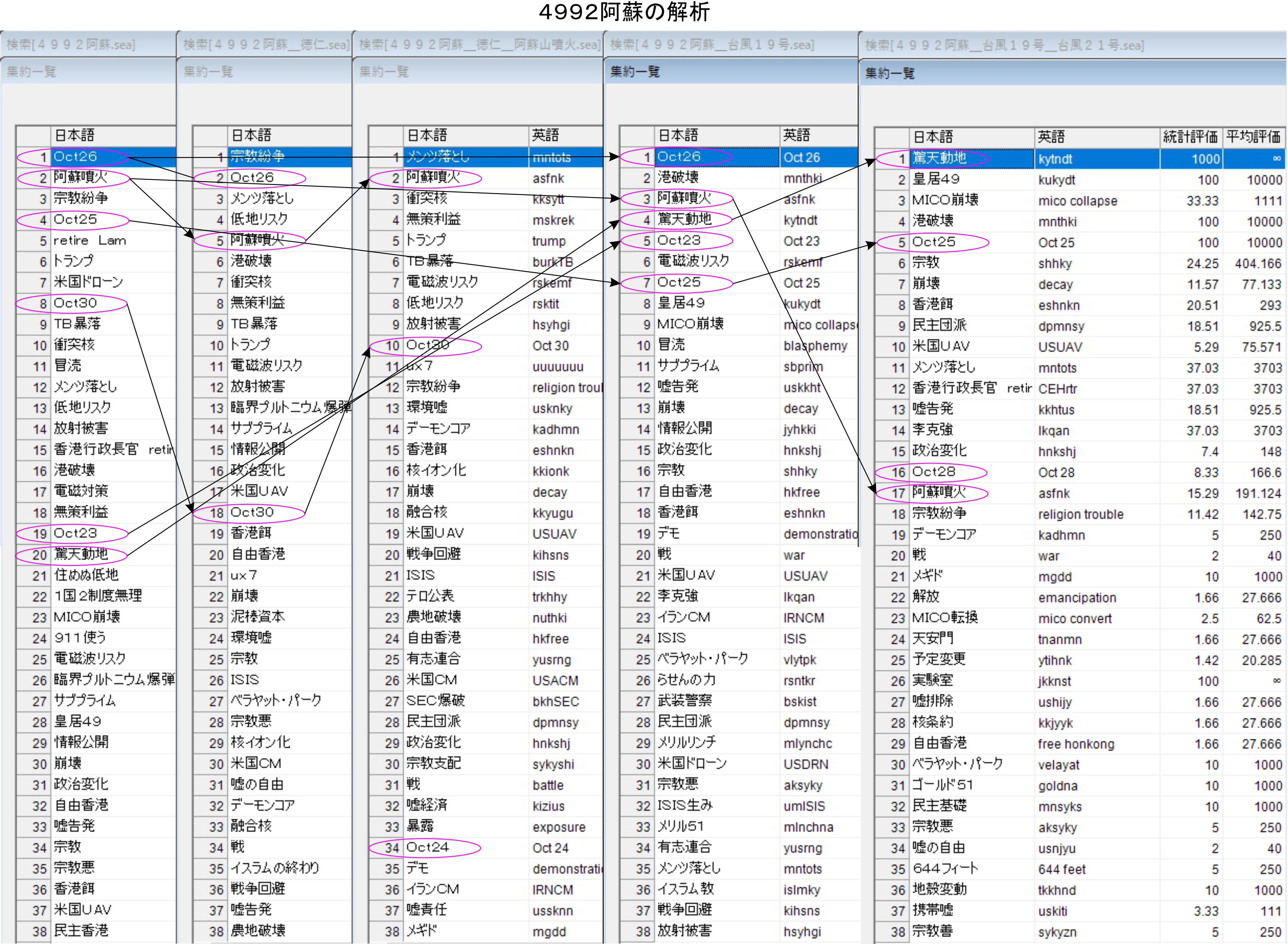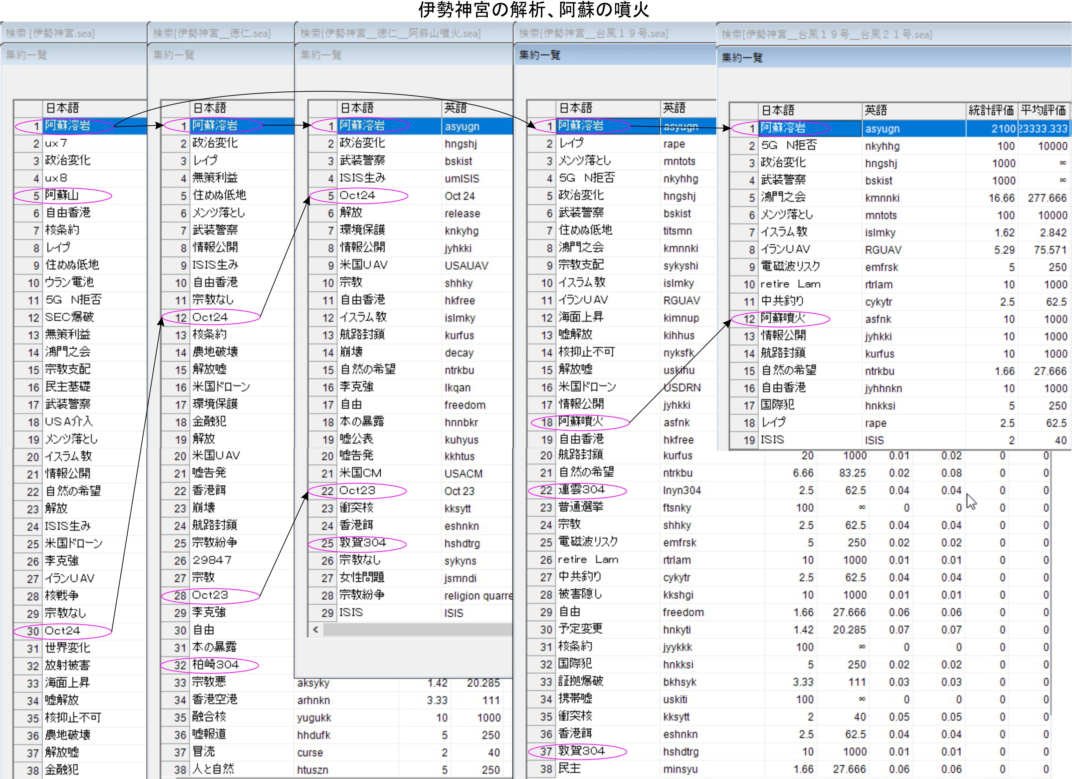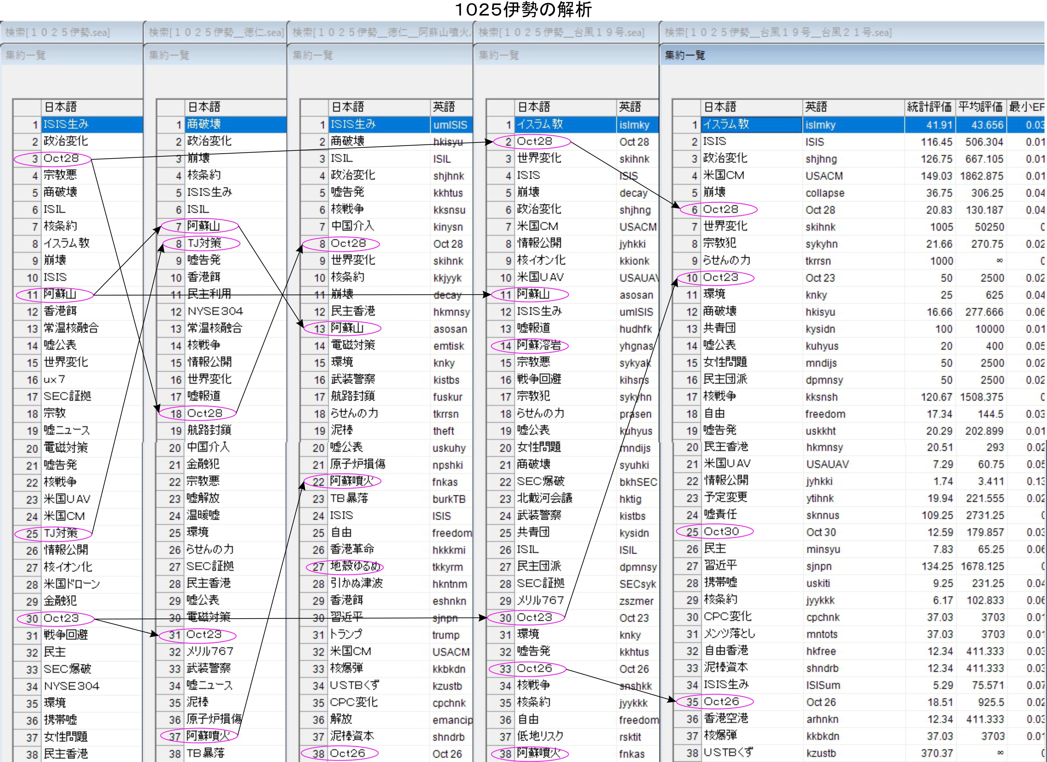 この解析結果では上位に阿蘇噴火が来ていますし、10月25日と30日は数も多いでしょう。実際にどうなるかはこれからですが、噴火のみならず驚天動地までも順位を上げる工夫を見せており、何かやるぞとはしたいのでしょう。
