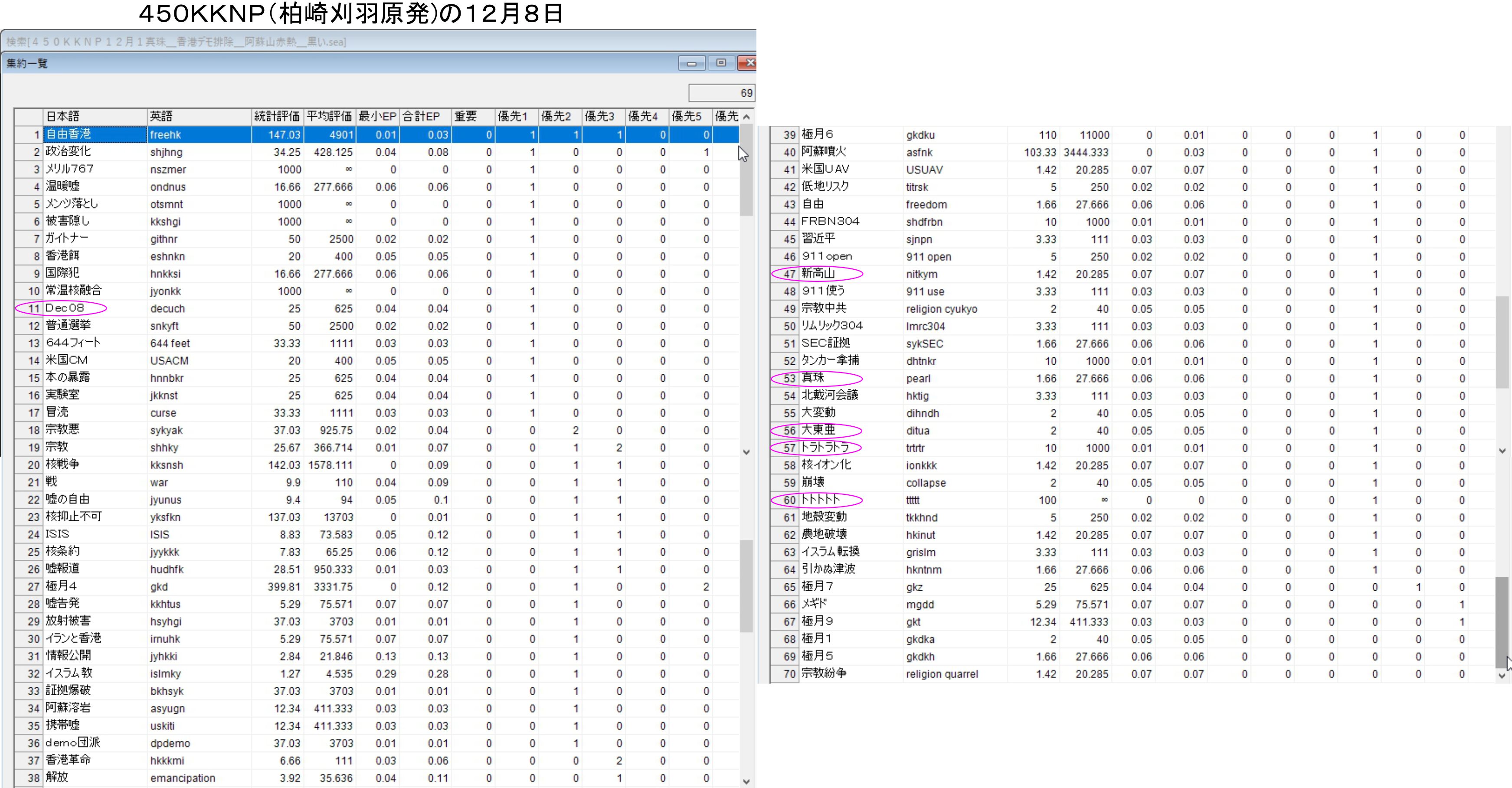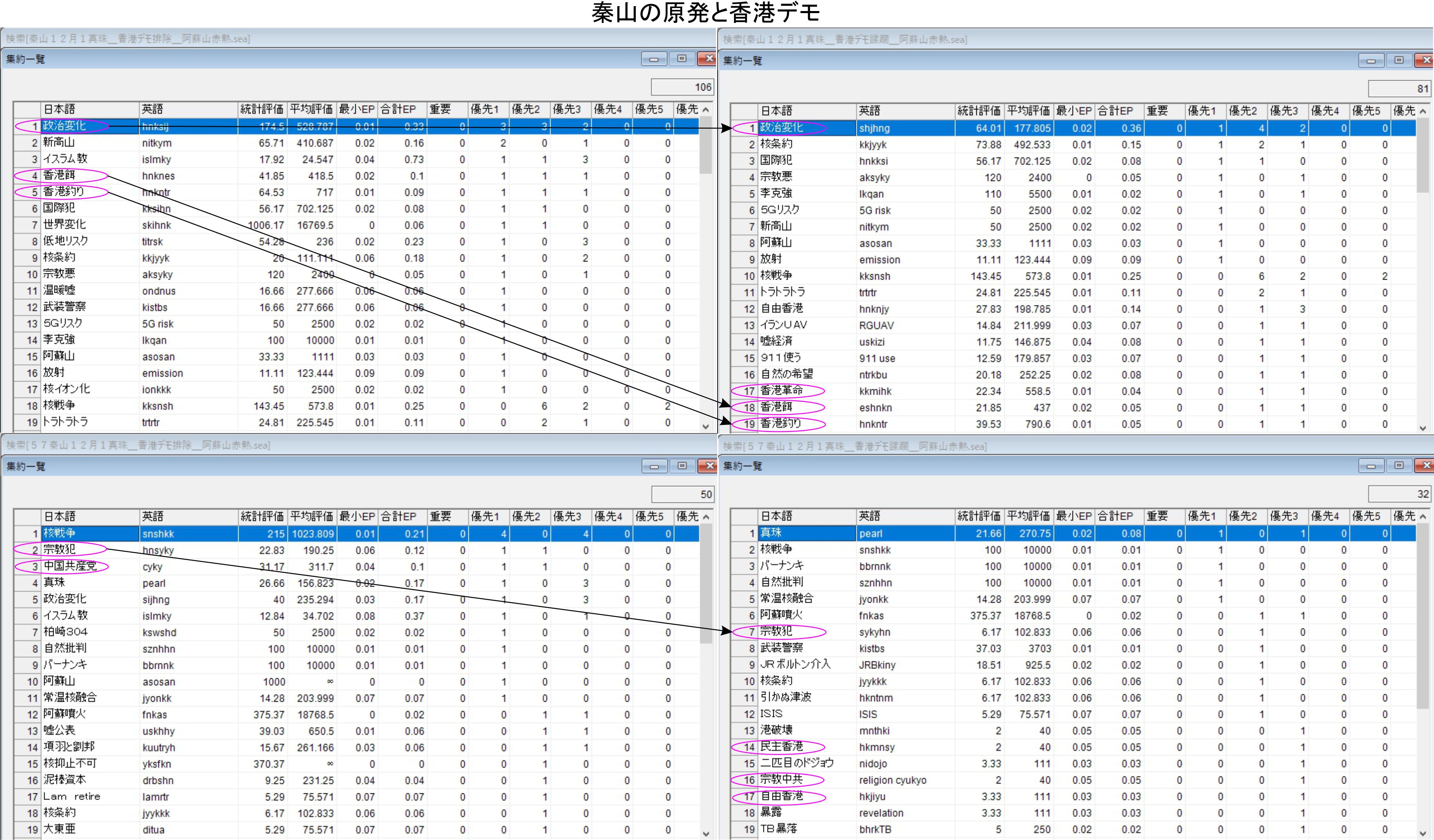 仮定の話を垂れ流しても仕方がないのですが、暗号解析で未来の計画がどの様な物かはある程度調べることが可能です。先日の香港デモ排除と、今予想される香港デモ蹂躙を比較してみました。