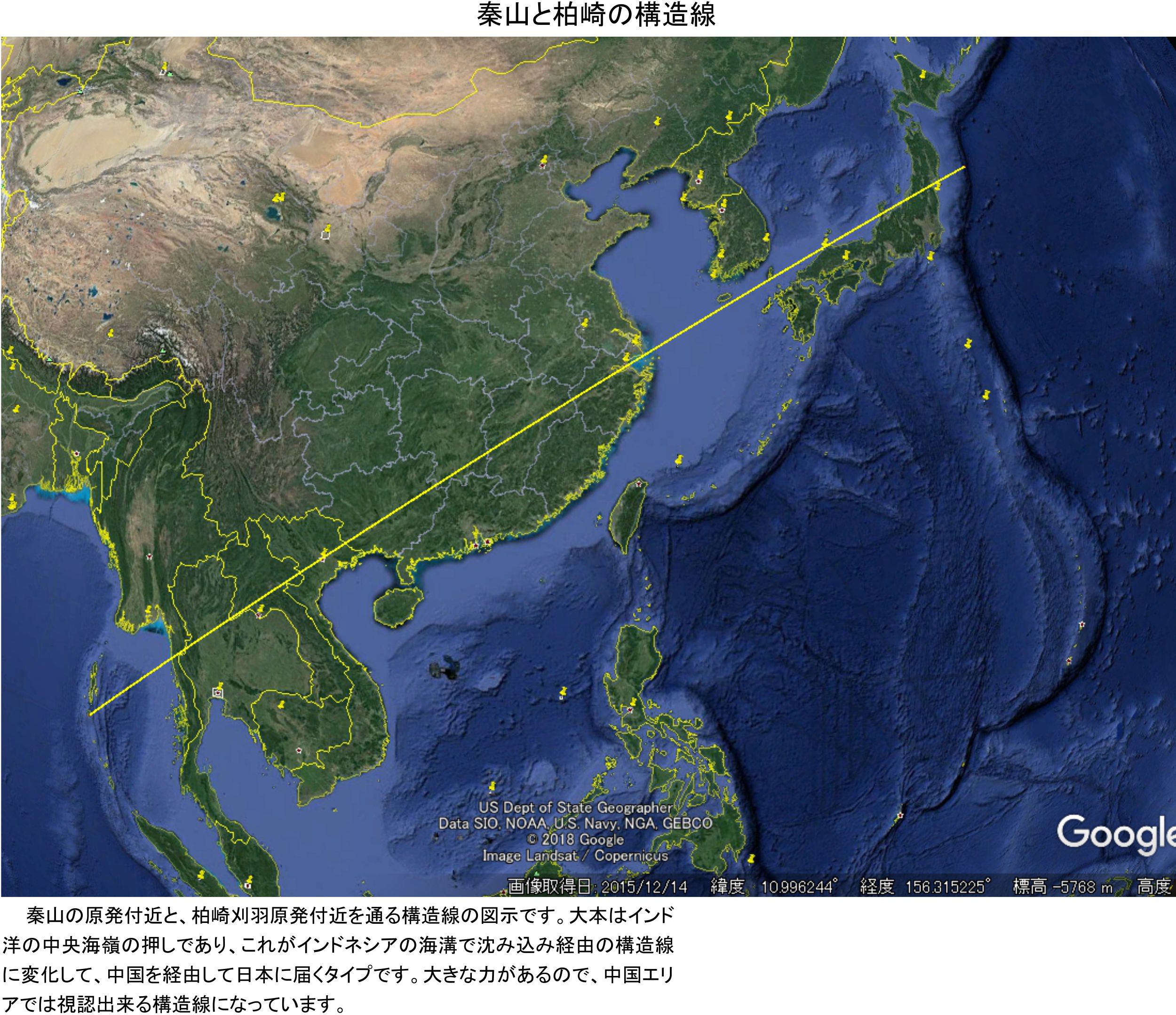良い方向に向けた変化になることを願っています。結局このHPの記事番号も含めた222であり、運命操作までを含んでこれをデモンストレーションするかどうかです。これは大きな釣り餌になるので、外す意味も大きくあるでしょう。要注意の明日です。構造線のイラストも追加しましたので参照下さい。秦山と柏崎の距離は1800kmですが、日本時間の3時22分に秦山が現地時間2時22分に動くとして、柏崎へ8日の10時38分は余裕の影響距離だと思います。スカかも知れませんが、明日一日注意が重要でしょう。