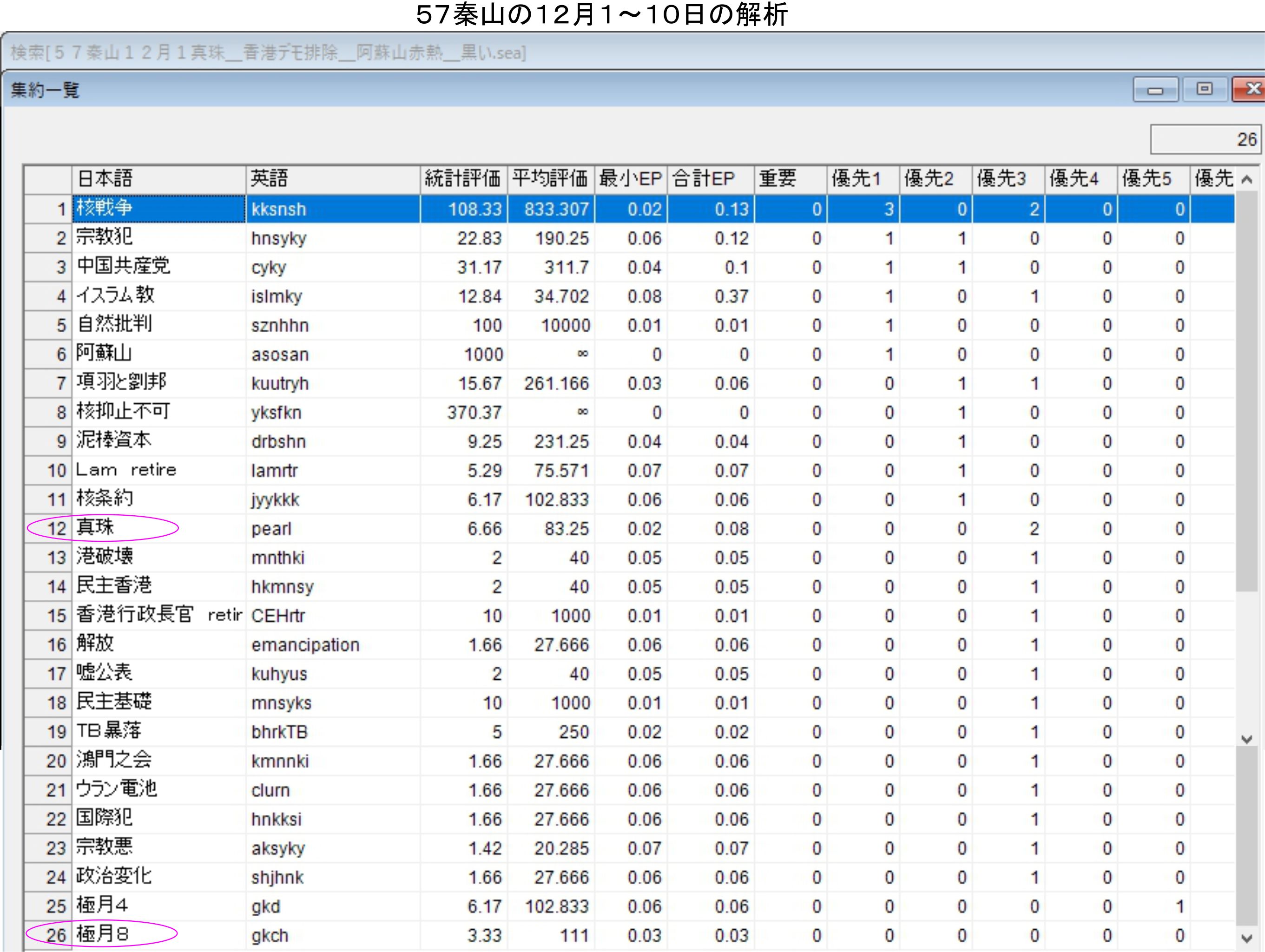 12月4日の茨城県北部の地震の319と昨日の唐山の地震の78で何を外すのかを気にしていました。出てきた答えの紹介です。19411208であり、1941+78=2019で20191208だと思われます。