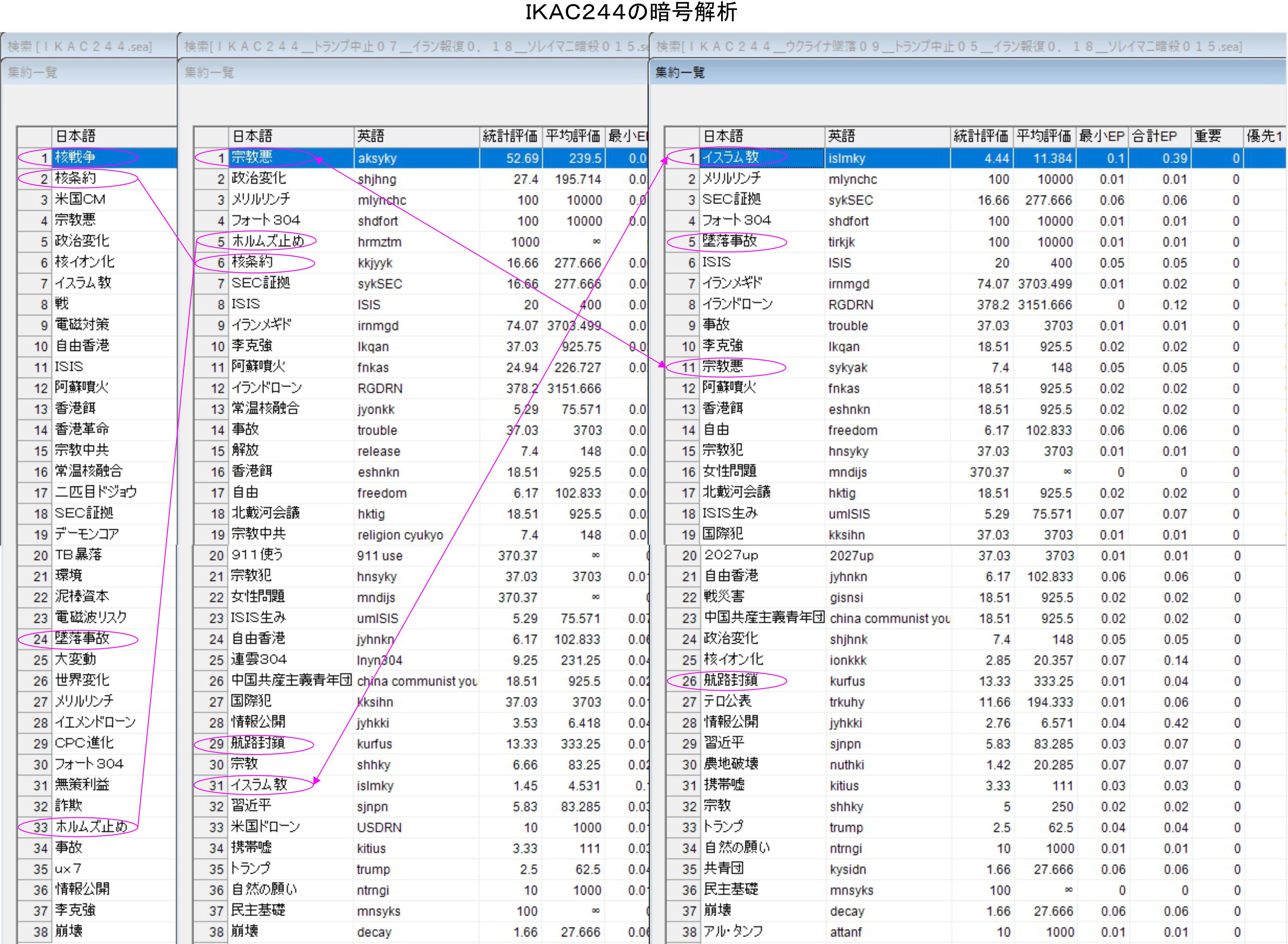 真ん中はウクライナ墜落事故が起きなかった場合として組み込まれて残されている未来の計画です。一番の宗教悪と31番のイスラム教が、事故が起きた場合にどの様に変化するか矢印で示しています。