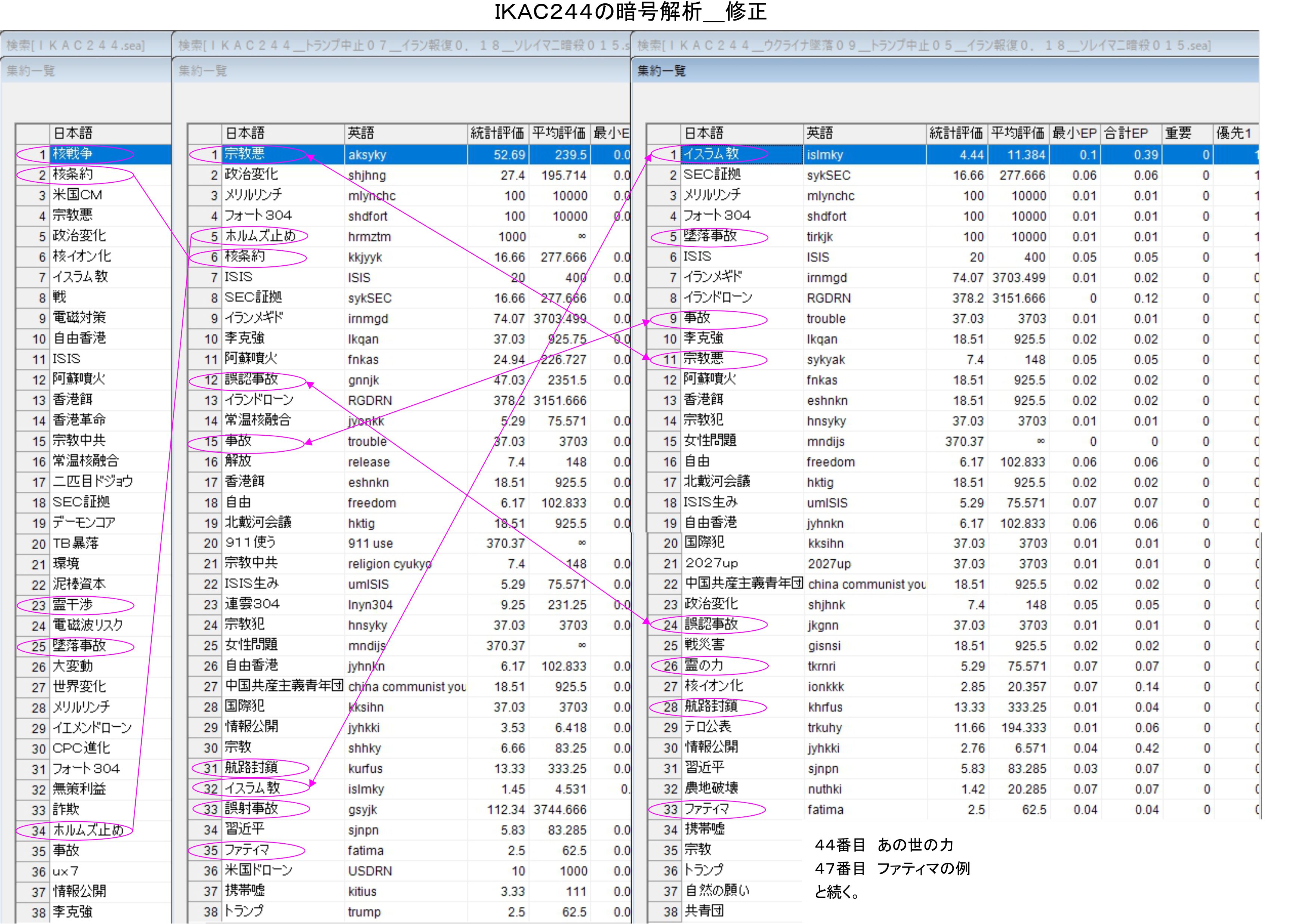 こうして未来の計画が現実化されているのでしょう。この先の変化で再びイランとの核戦争を望む動きが起こされて、核戦争のリスクが再び高まることにも可能性があるでしょう。どの様なイベントが起こせるかの問題であり、私たちの知らない部分です。暗号の中を一通り調べることが出来るにしても、何が起きるのか分からなければ調べようがないのでした。暗号解析ではどこまでヒントも含めて調べられるかの利用方法です。今回の解析に先史文明からの組み込みが大きく役立っている部分はご理解頂けると思います。