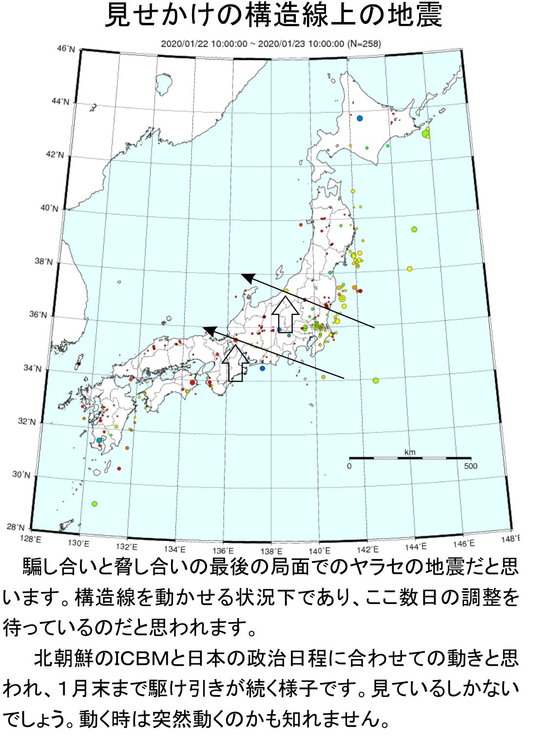 この地震は三重会合点から敦賀への構造線付近の地震であり、動かせると脅している物でありヤラセでしょう。本日2020123が組み込まれていますが、口永良部島の噴火を思えば先送りを望む物にしか見えないところです。