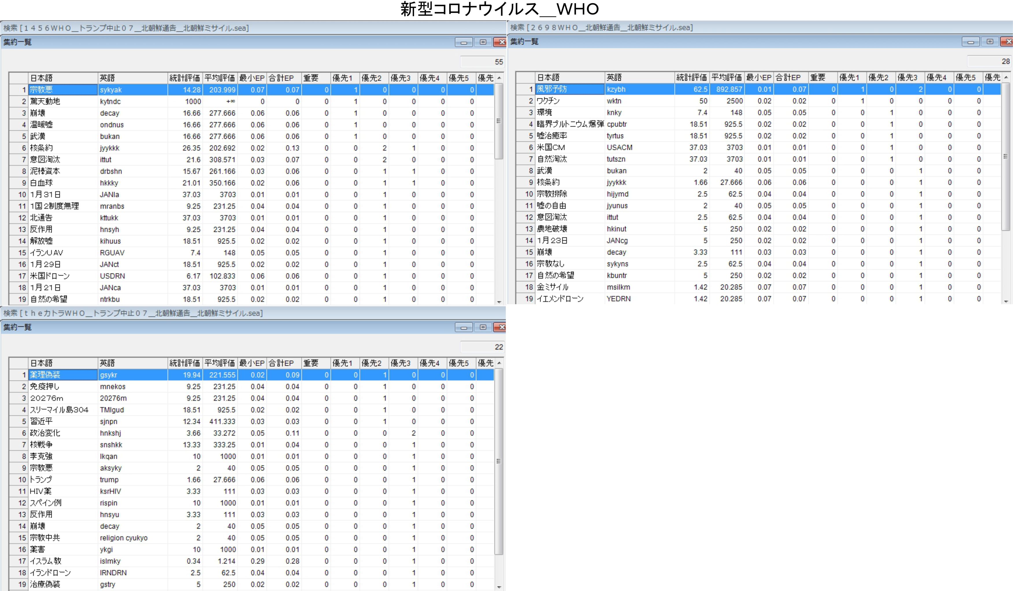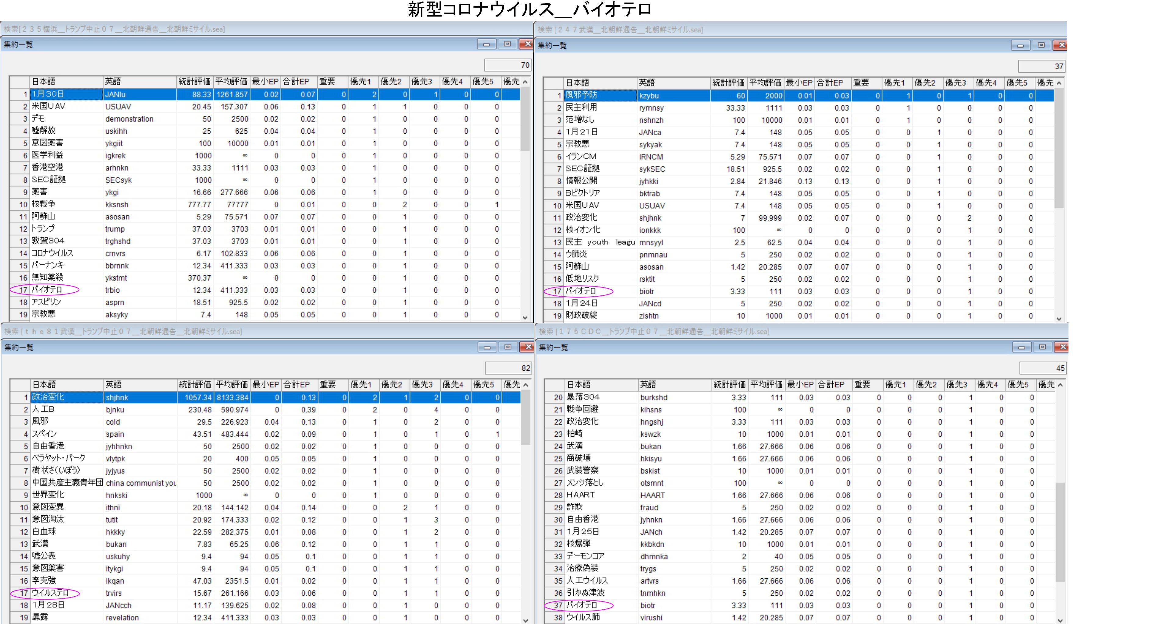 その他はよく似ている結果ですが、Mワクチン1位には驚かされています。Mは丸山とミリタリーのMでありペンタゴンの軍ワクチンと丸山ワクチンの意味に二重に解釈可能でしょう。始めは丸山のつもりでしたが、この結果となりました。
