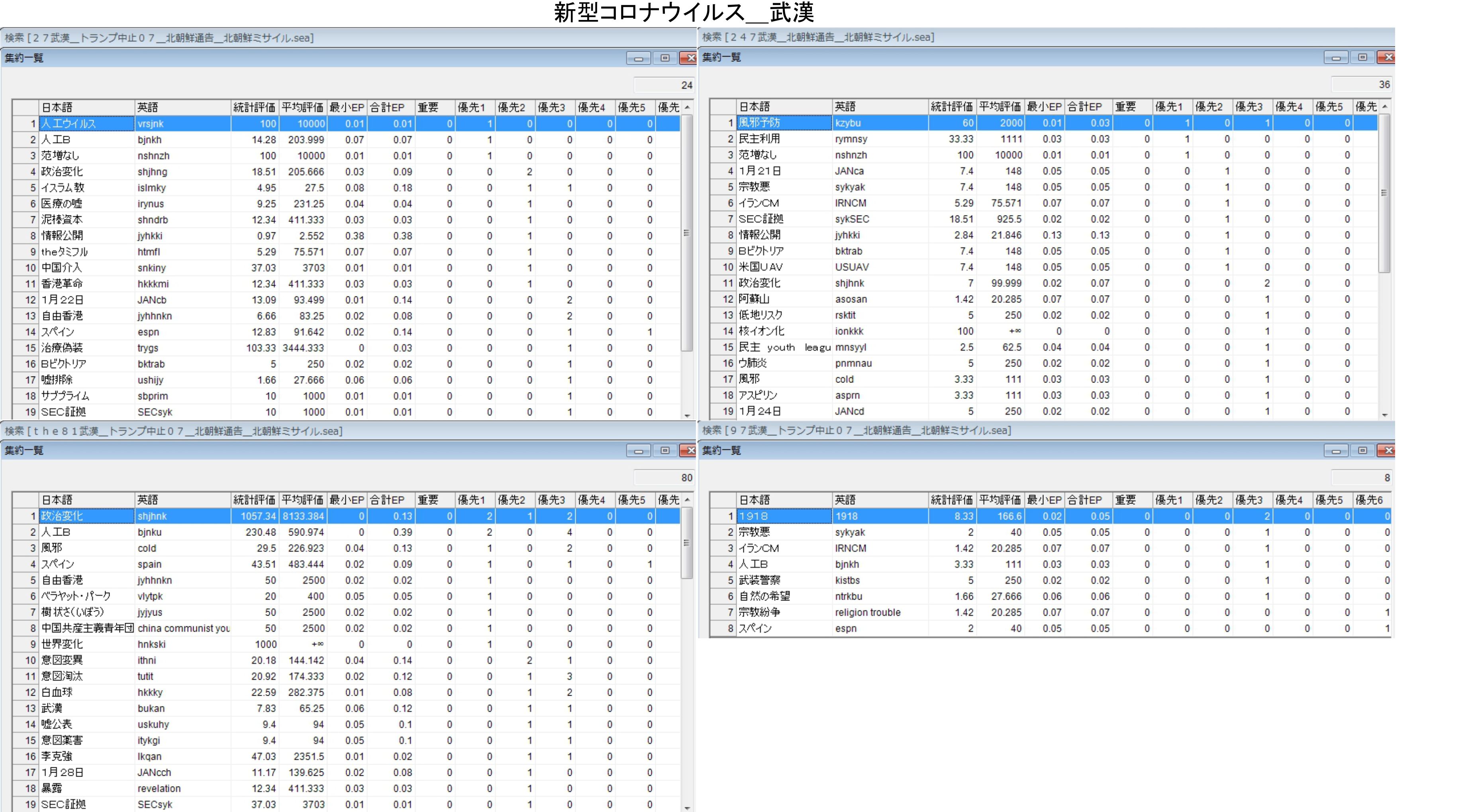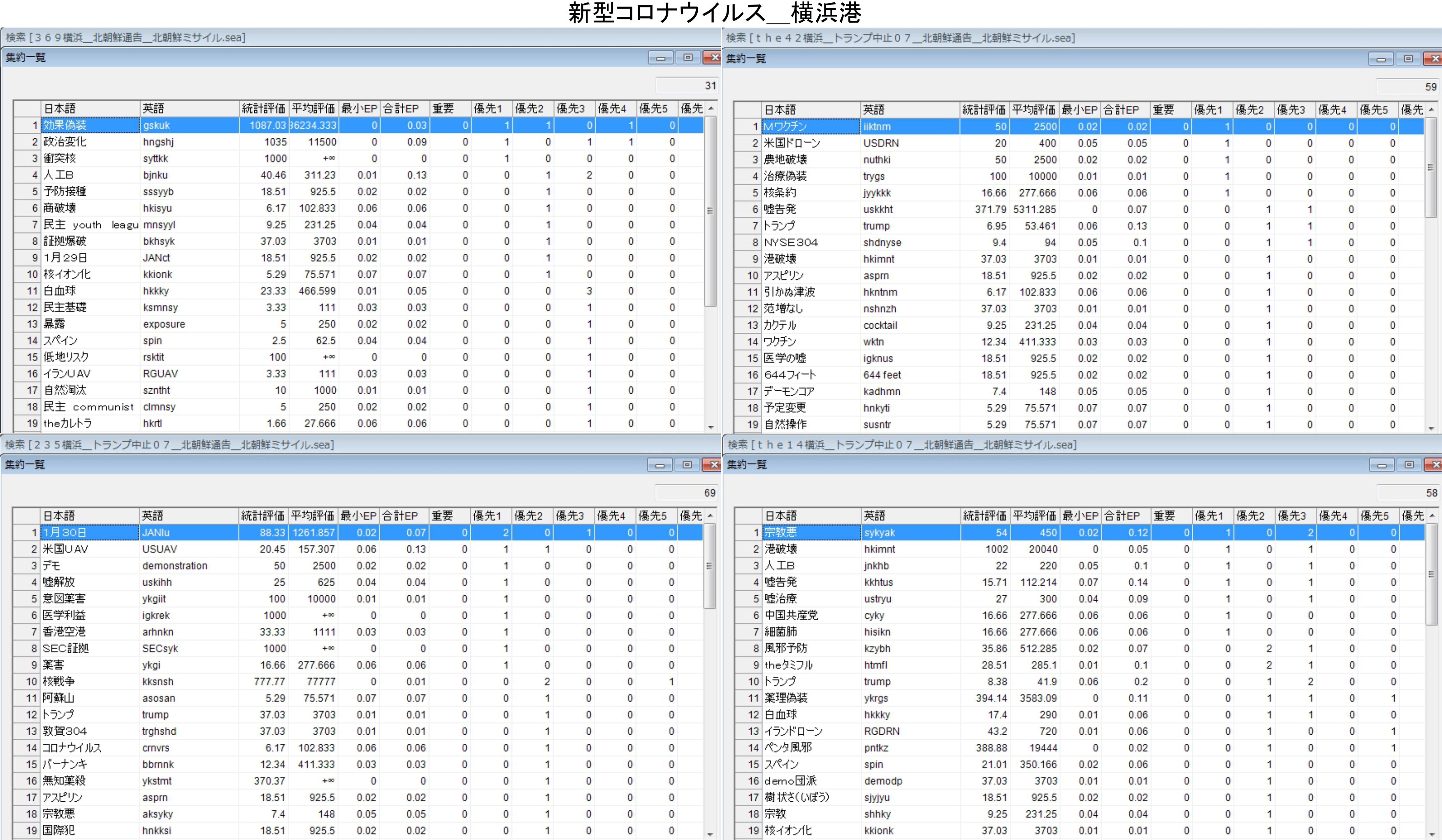 ここでも武漢が上位に出てきます。2位と9位と18位です。続きで見る横浜や武漢では出されていない情報です。起きていることとして当然だからでしょう。