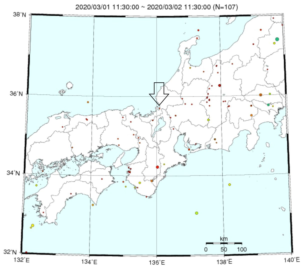 若狭湾には小さな震源を本日も見せており、少し前から続くヤラセと区別の付かない前兆に出来る物です。このまま数が増えれば地震科学としての注意を書くことになります。
