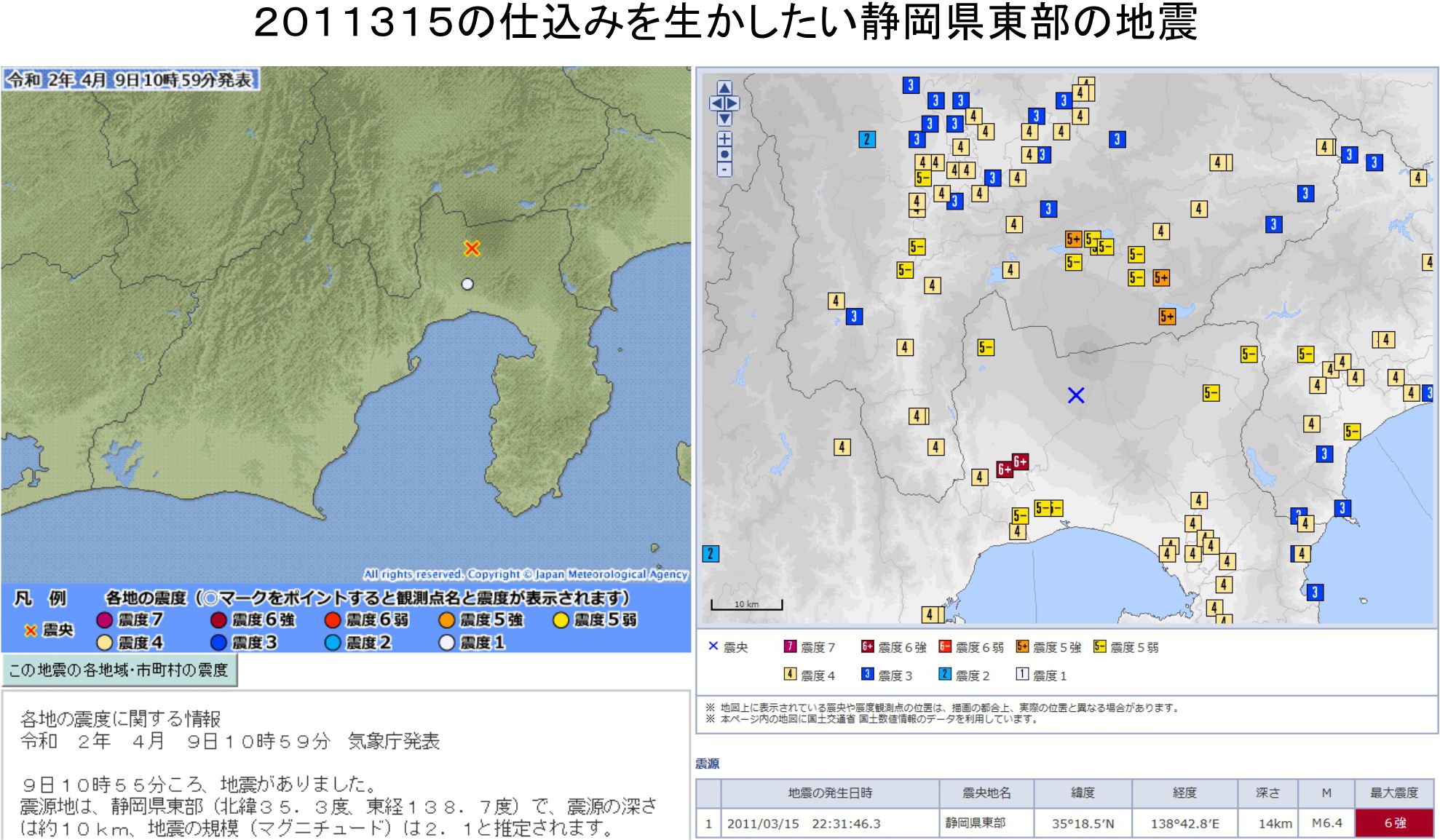 10時55分に静岡県東部でM2.1深さ10kmの富士山のマグマ溜まりの地震があり、2011年3月15日のM6.4震度6強の震源地と同じ場所になります。数日前に公表されたGPS変動データーにおいて富士山の活性化は見ていましたが、それをこのレベルで使う必要性には意味なしです。まだ続きがあると思われ備えも重要になるでしょう。解析はこの後です。