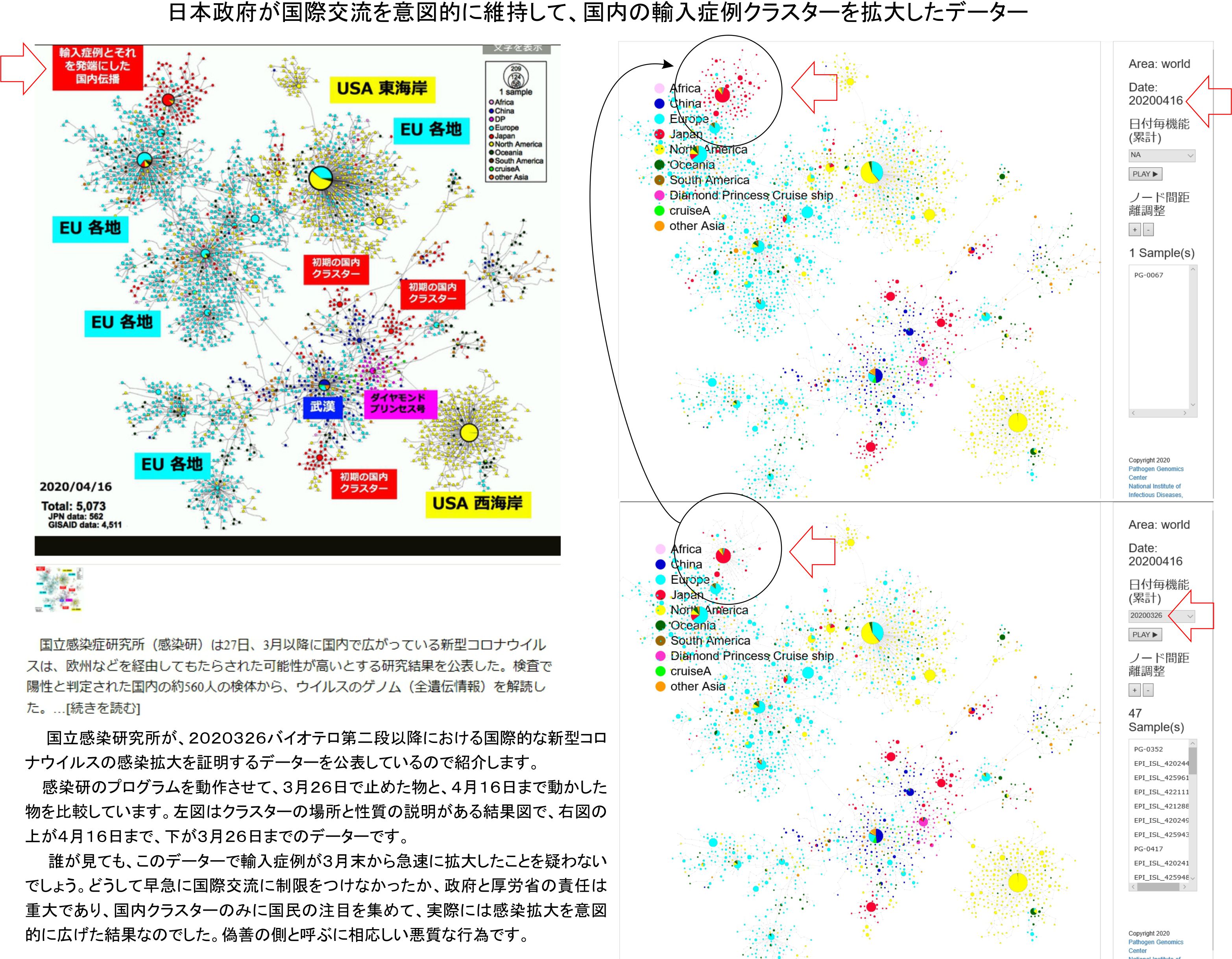 感染研が日本の新型コロナウイルスの拡散状況を、遺伝子解析で明確にしてくれたデーターが27日に公表されており、本日のニュースで流れました。地の声は2020326における二度目のバイオテロの発生に警告をしており、ここで再度の拡散が行われた可能性が高いです。