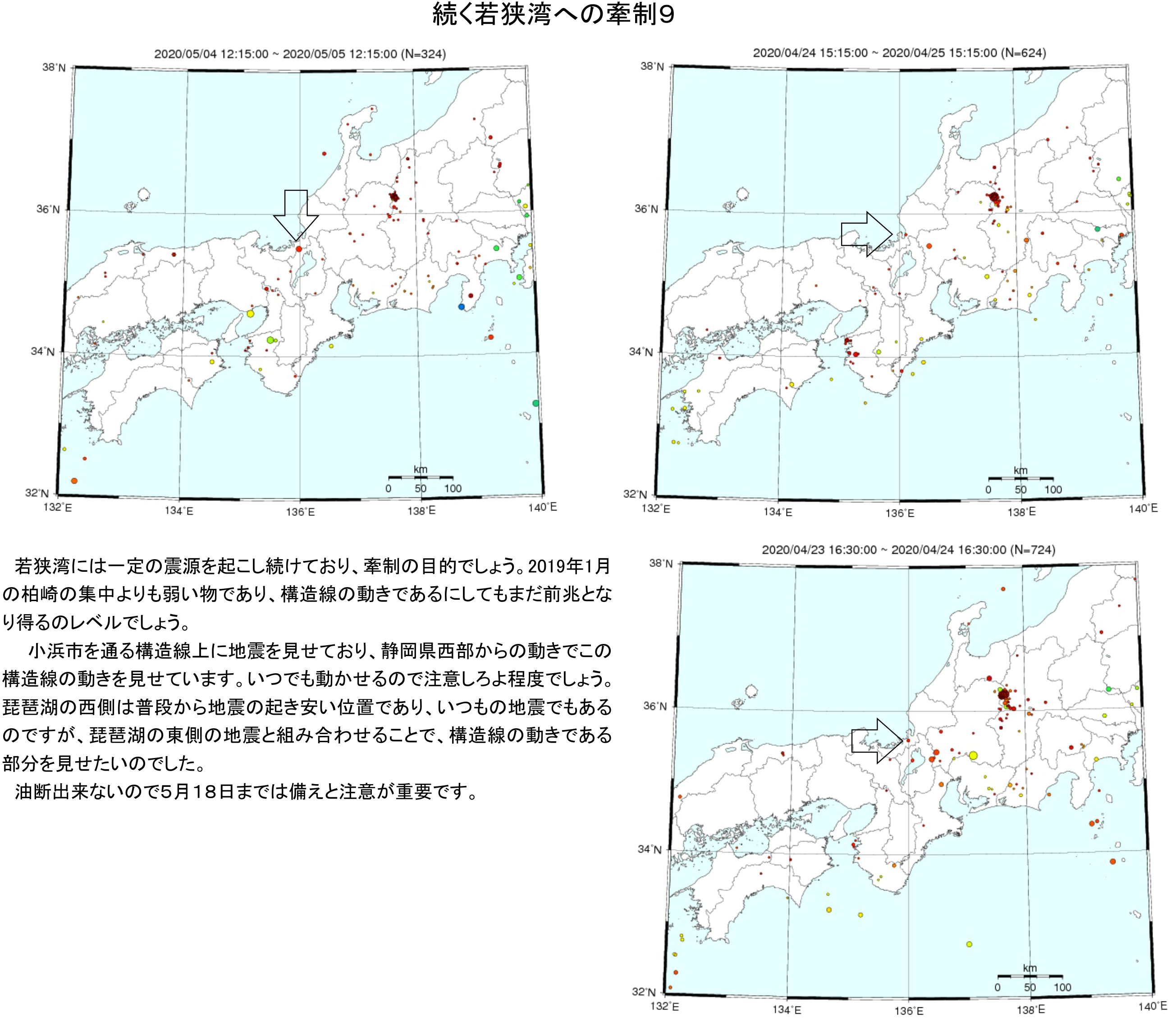 情勢に変化はありませんが、若狭湾の構造線に動きを見せて牽制しています。あとでイラストで紹介します。