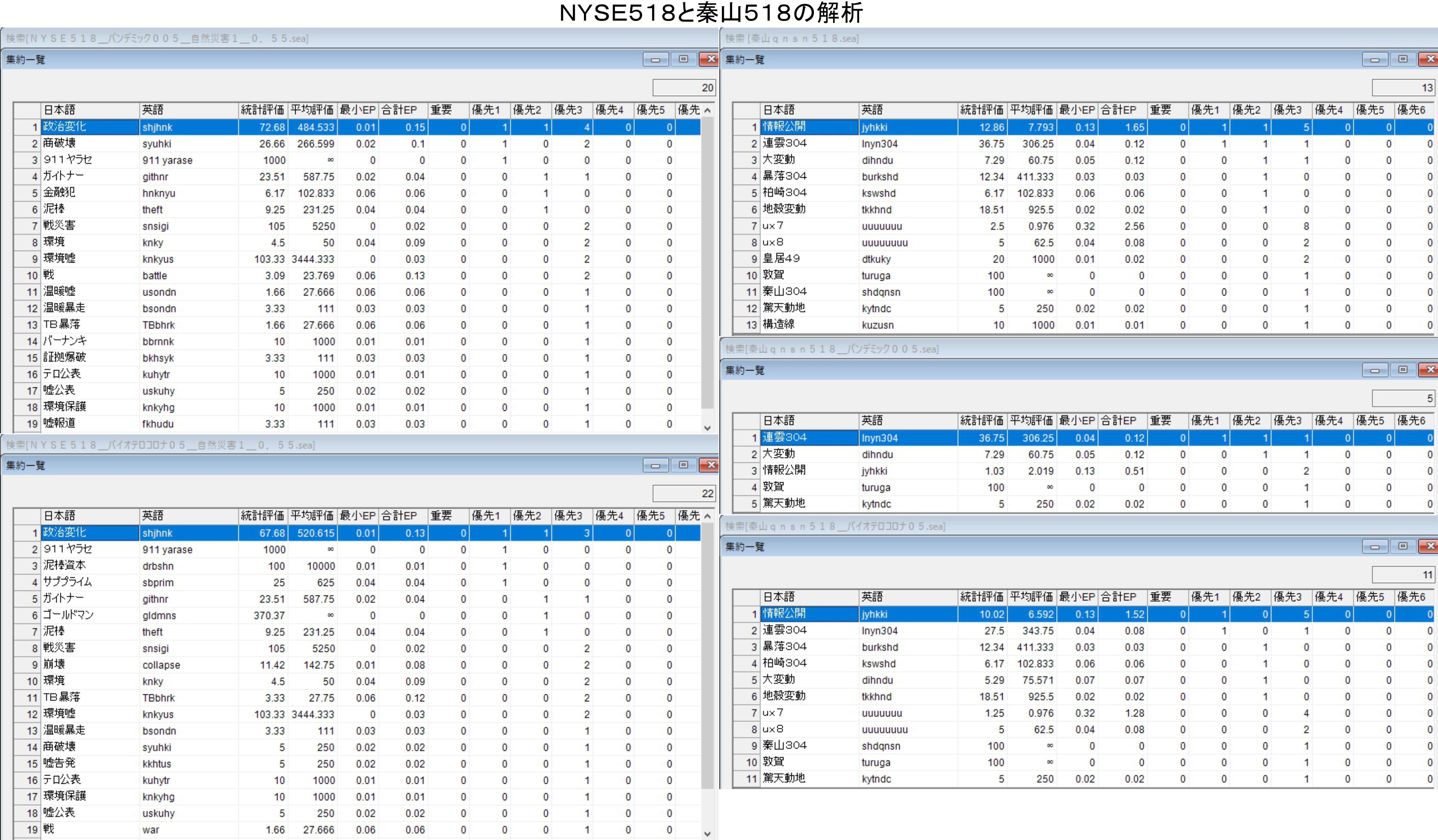恐らくその結果に対応しているのが、秦山518のデーターでしょう。パンデミックで見るとリスクは低下するのですが、バイオテロで見ると地殻変動と秦山の組み込みが確認出来るのです。ここにはバイオテロに続く自然災害の可能性が表れており、秦山517よりも強い可能性だと言えるでしょう。