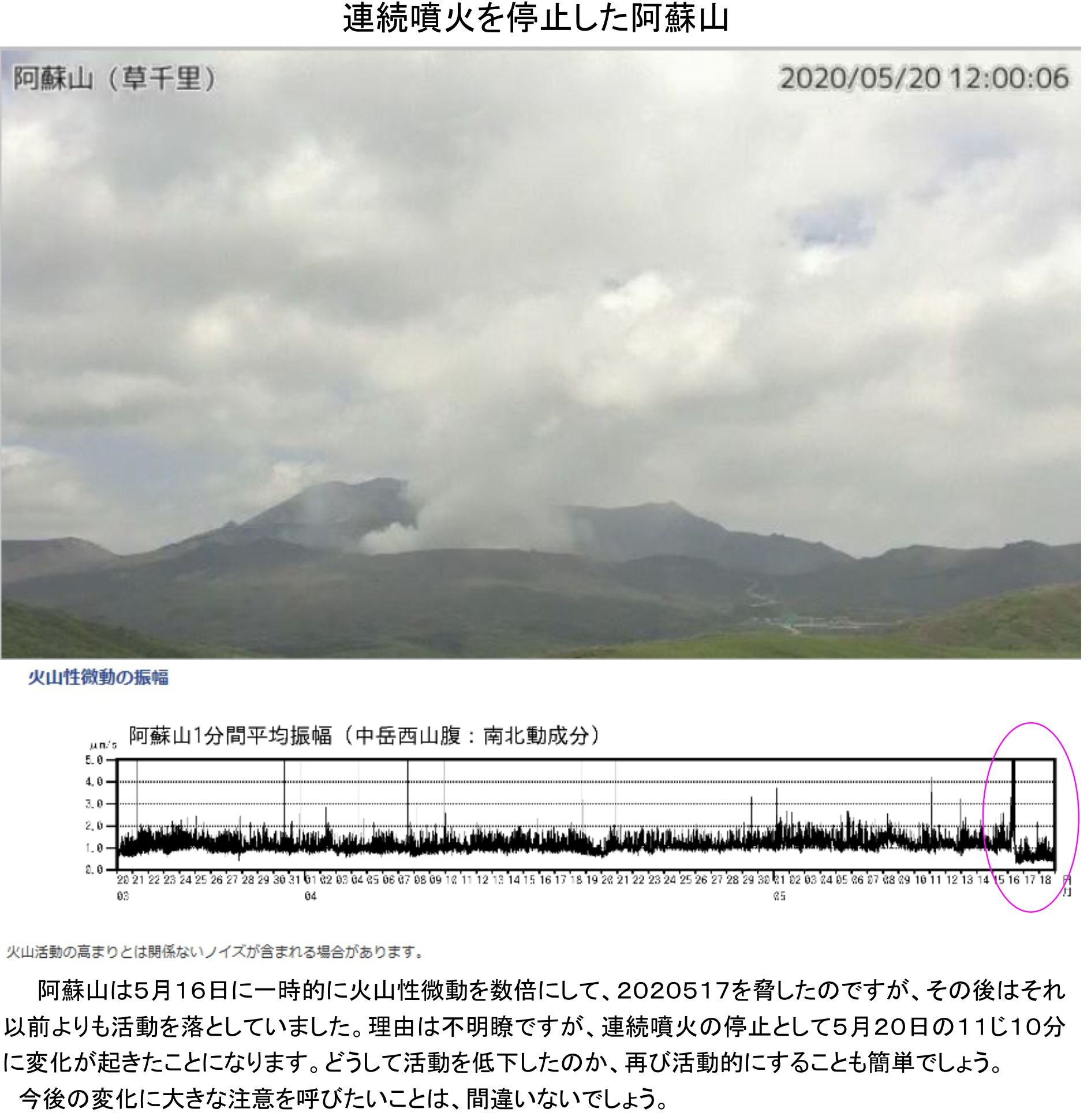 こちらが一番に気にする部分が、阿蘇山が連続噴火を停止する部分です。停止後直ぐに問題が起きても良いでしょう。2020528までには時間がありすぎますし525でも時間があるでしょう。何のために520に停止したのかに注目させているのです。