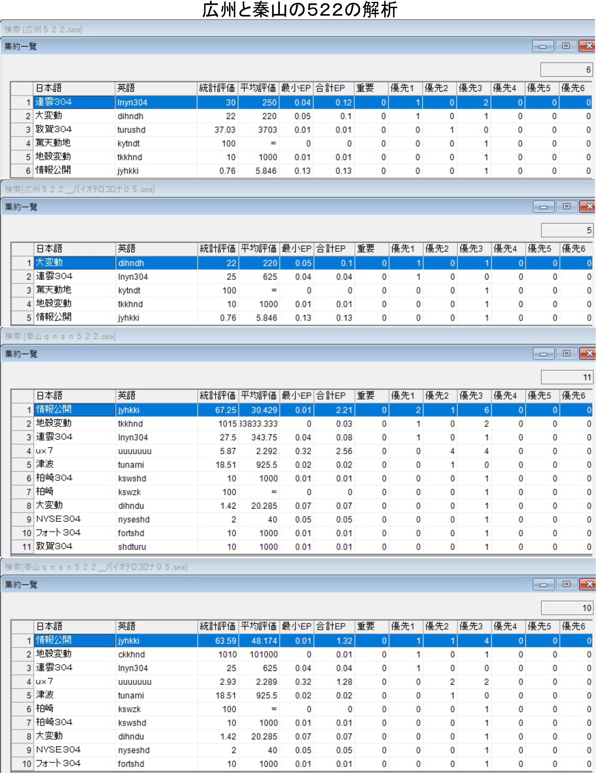 コップの森やサウスアンボイが動いても、北朝鮮のミサイル発射に影響するかも知れませんが、5月22日は中国の動きに注目とされているので広東と秦山の解析を優先しました。サウスアンボイとコップの森は明日1日を使っての作業です。適切な言葉を選ぶ必要があるのでその確認に時間をとられる予想です。