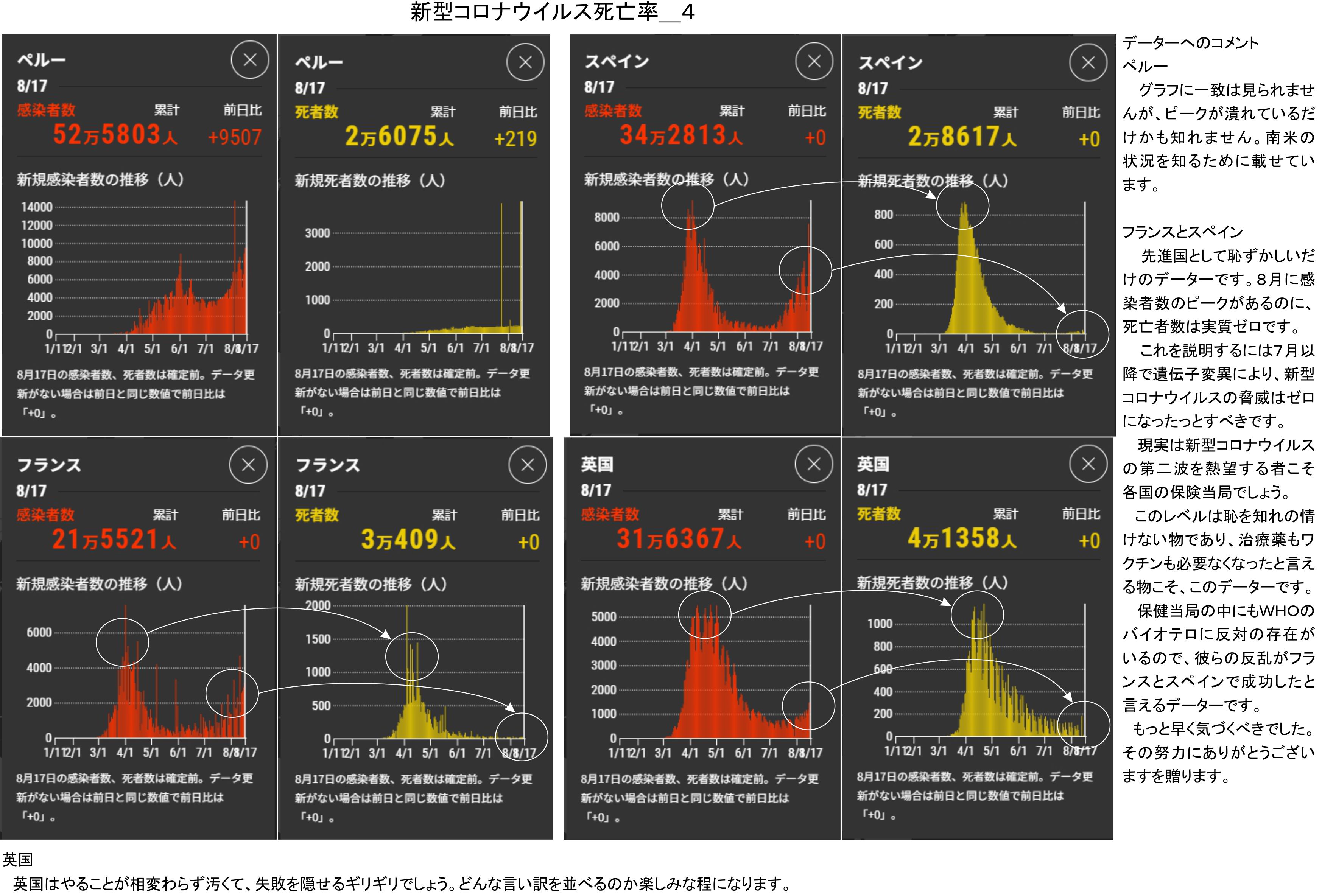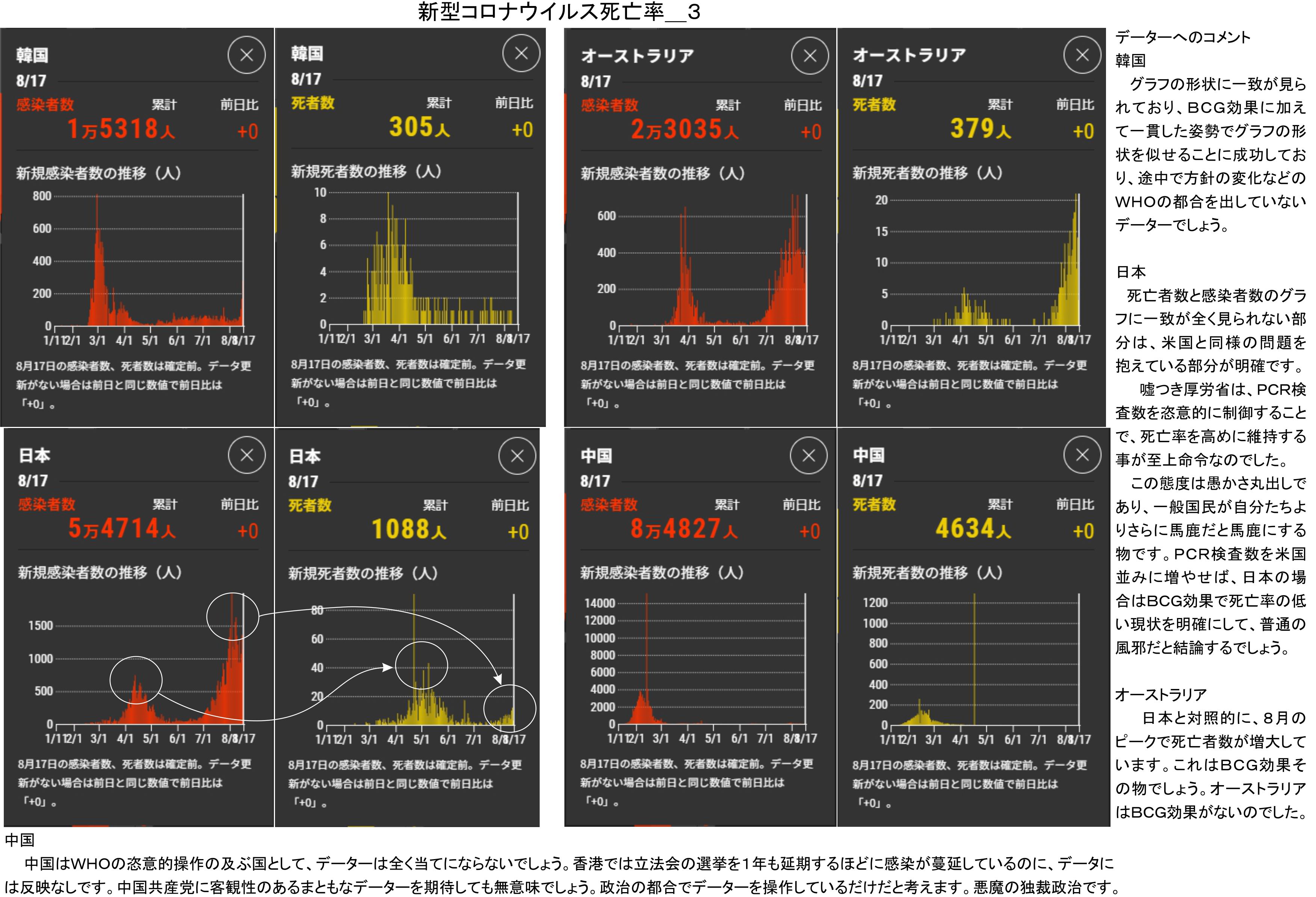 先進国として恥ずかしいだけのデーターです。8月に感染者数のピークがあるのに、死亡者数は実質ゼロです。