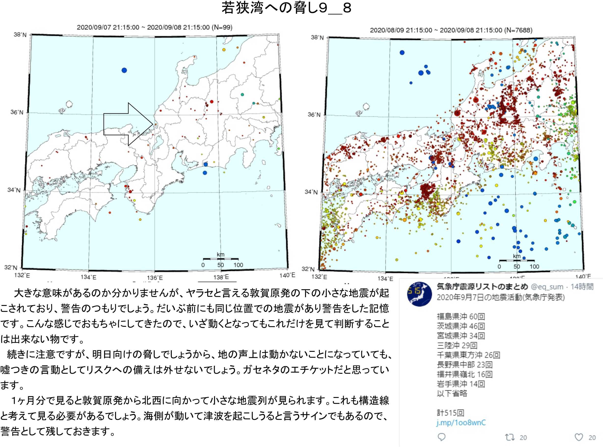 大きな意味があるのか分かりませんが、ヤラセと言える敦賀原発の下の小さな地震が起こされており、警告のつもりでしょう。だいぶ前にも同じ位置での地震があり警告をした記憶です。こんな感じでおもちゃにしてきたので、いざ動くとなってもこれだけを見て判断することは出来ない物です。