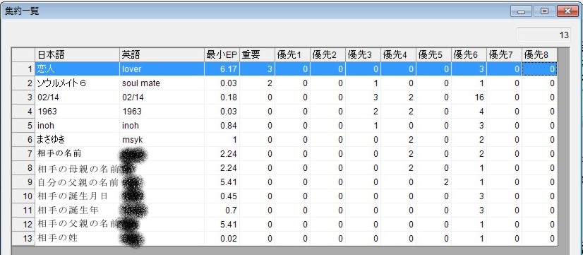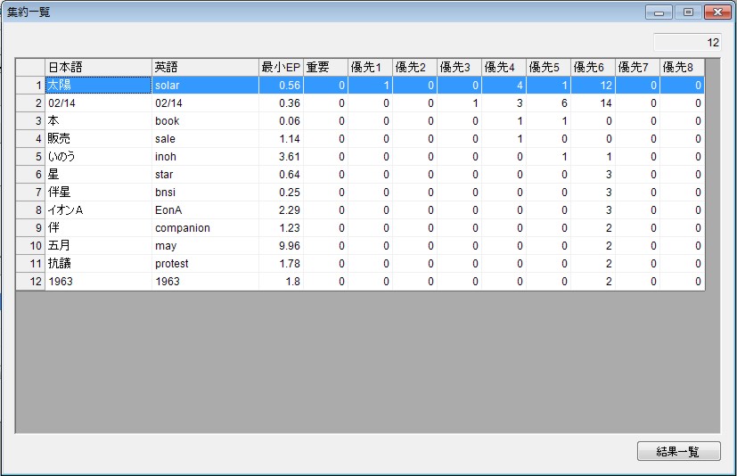 今までのソフトでは集約画面がなかったので、この例では64個の言葉のすべてを見てこの内容を考える必要がありました。ここでは12種類の言葉に集約されていますので、意味の解読が優しくなりました。