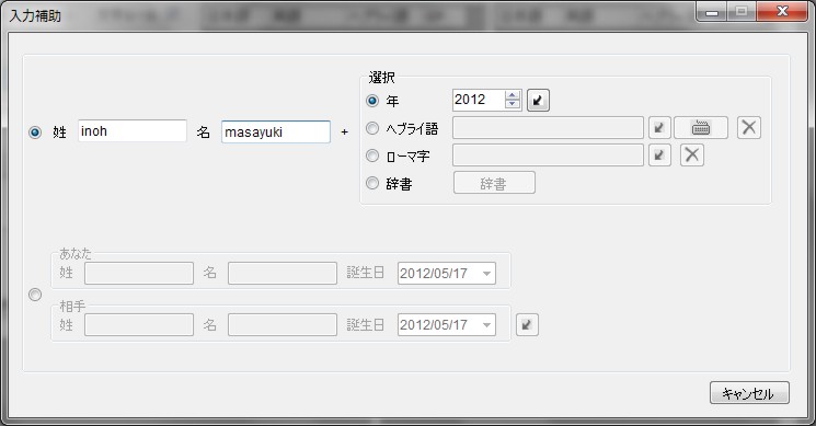 メインキーワードに自分の名前を入力し、2012年を選択すると、メインキーワードが自動で入力されます。来年の自分や自分の仕事など、組み合わせて作るメインキーワードが、この種のメニューから簡単に入力できるようになりました。