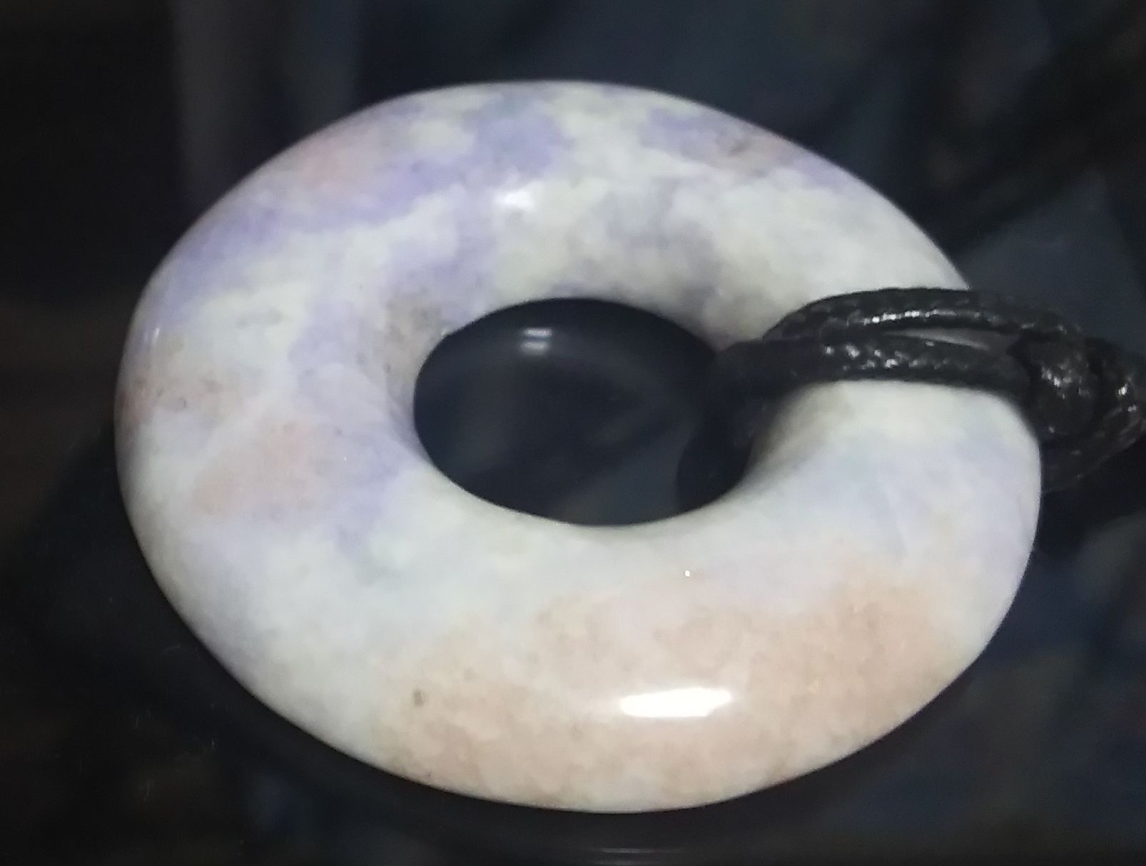 パワーストーンの最後にはこちらの実例の続きを載せておきます。神事につれられてグアテマラのティカル遺跡を訪れたことがあり、その続きでアティトラン湖にも行っており、翡翠の首飾りを買っています。エネルギーがあるので大きな物を身につけるとどうなるかを試したのでした。直径が6cmで2cmの穴があり、厚みは6mmくらいです。