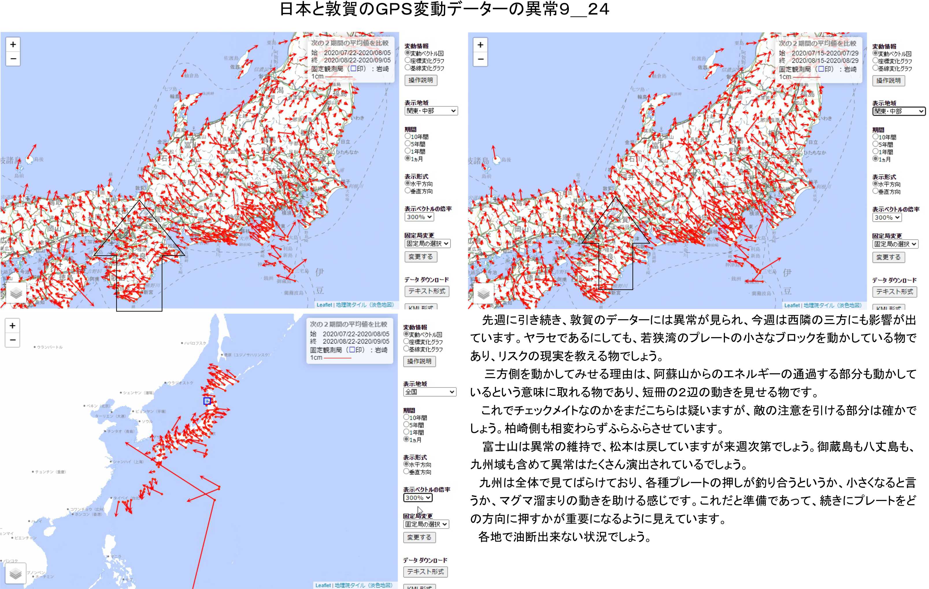 実際に何が突撃か、情報公開が来ても突撃だと口にするだけでしょうし、台風12号の残りはまだ南海上ですが、八丈島周辺の津波地震が起こせないわけでもないでしょう。敦賀も柏崎も動けるのですが、教えないにしてもここにある数値は自分たちのお楽しみでしかないでしょう。前兆も満足には見せておらず、敦賀と三方のGPS変動データーの異常でリスクが高いのに注意でしょう。
