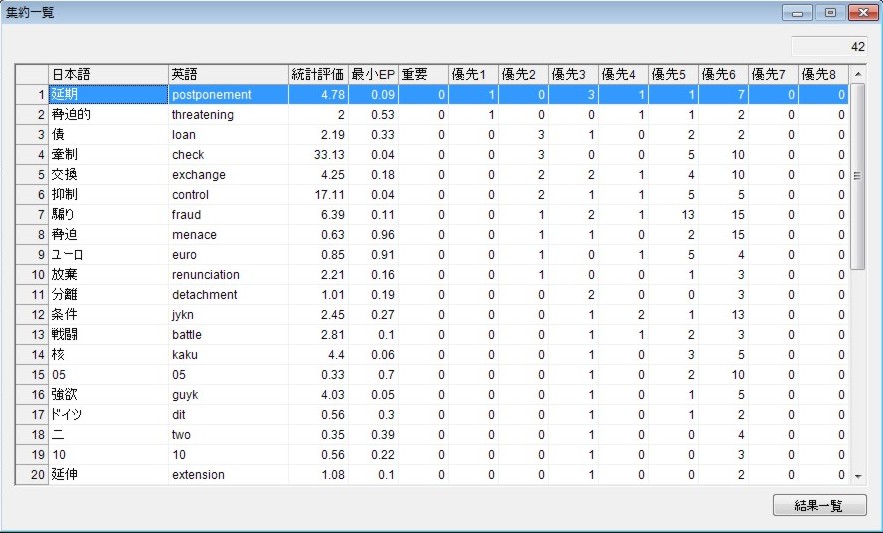 本日も新機能紹介のために集約一覧を載せておきます。新機能として統計評価という数値を出しています。この数値は文字種から計算される存在確率と、実際に出力された位置と個数の情報を加味して計算した物です。大きな物ほど強調されていると考えて下さい。