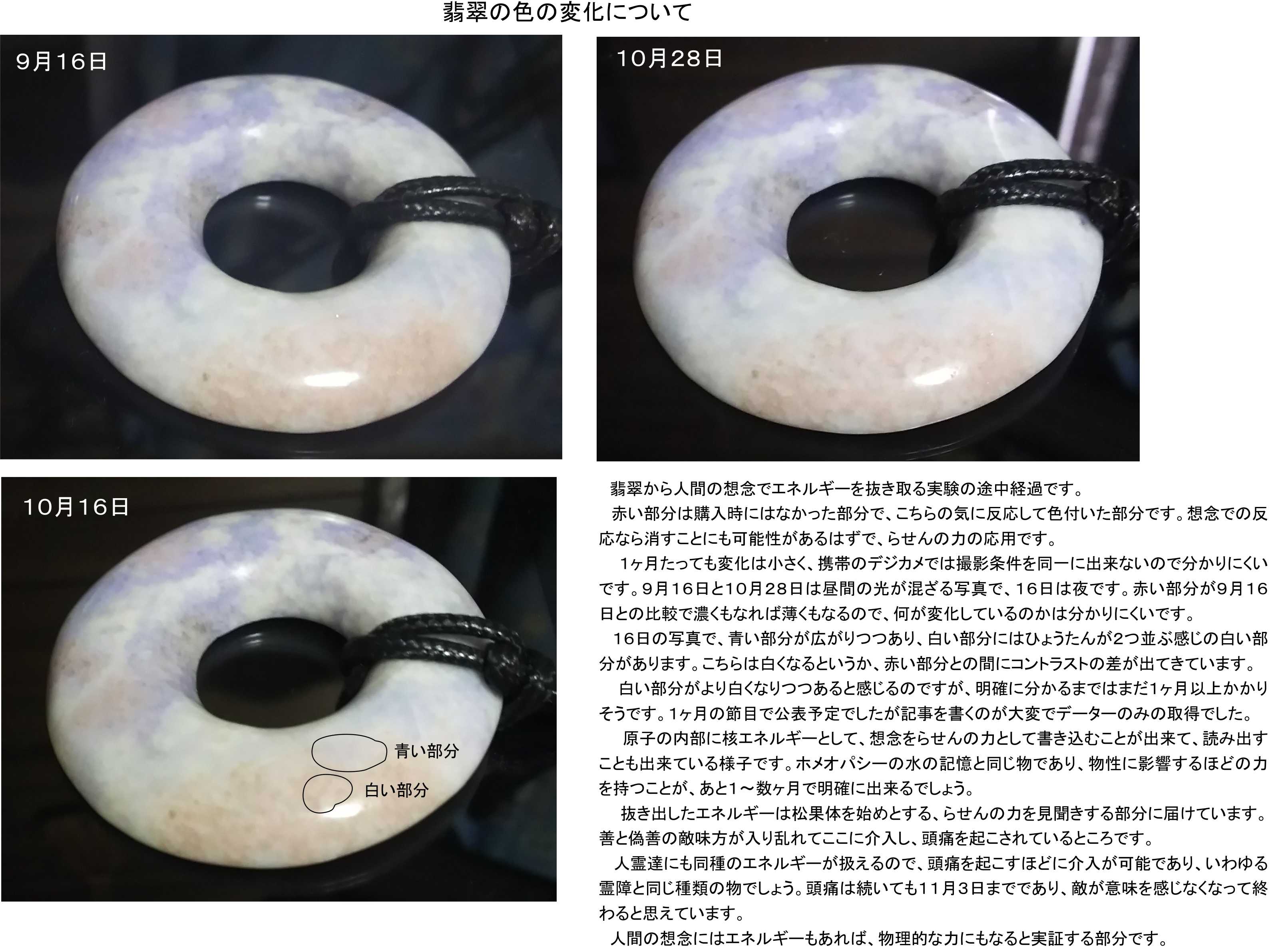 翡翠から人間の想念でエネルギーを抜き取る実験の途中経過です。