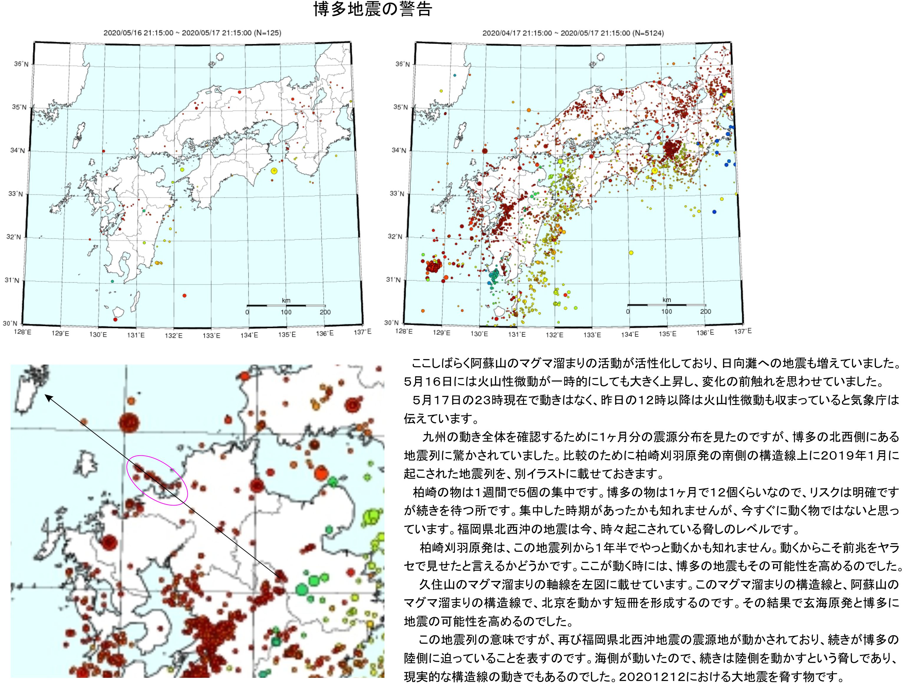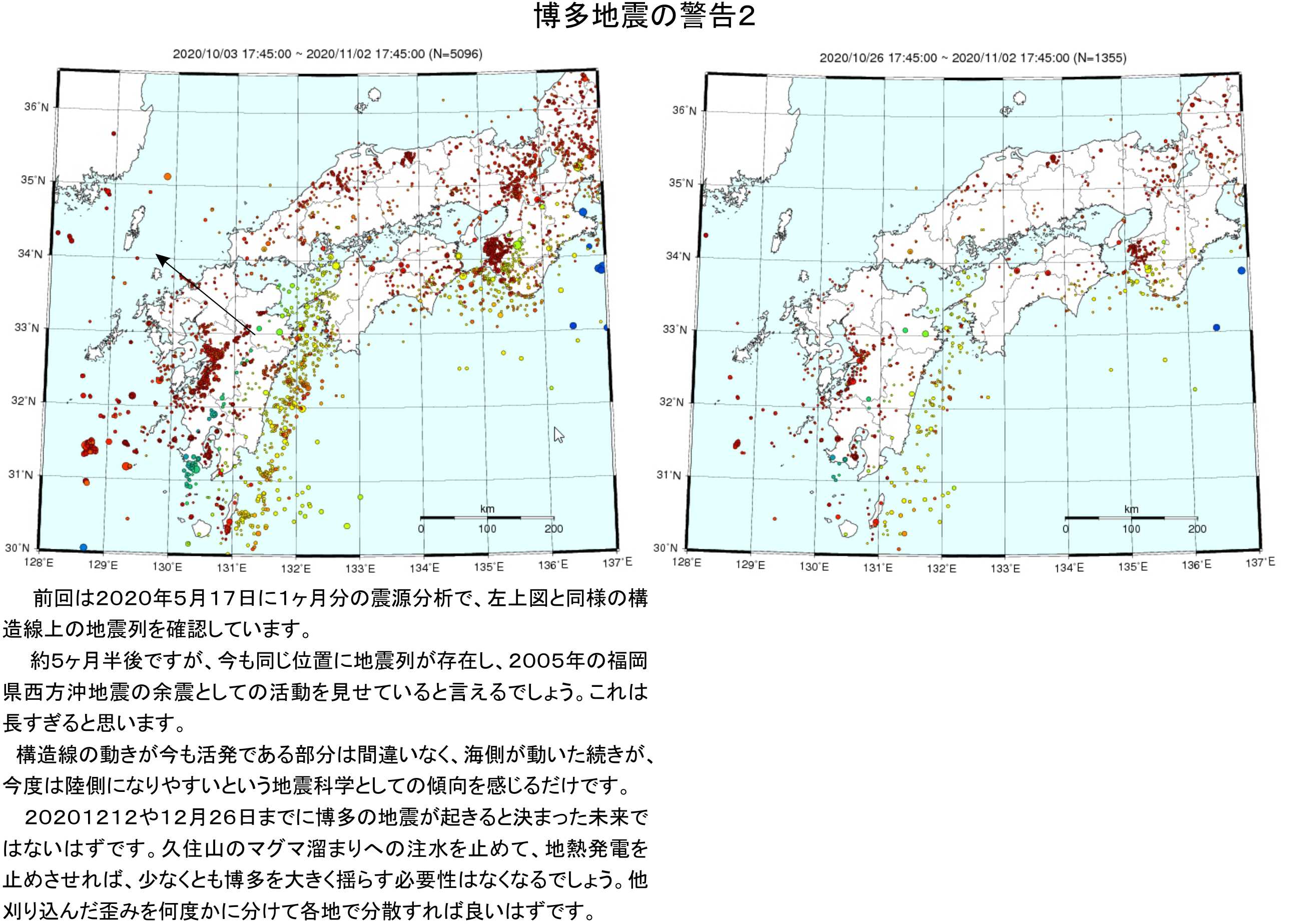 こうなると続きの地震を心配すべきでしょう。2021年には影響が出て来る可能性が非常に高く、2000kwでM6.2前後、深さは地表で福岡市にも可能性を否定しないのです。