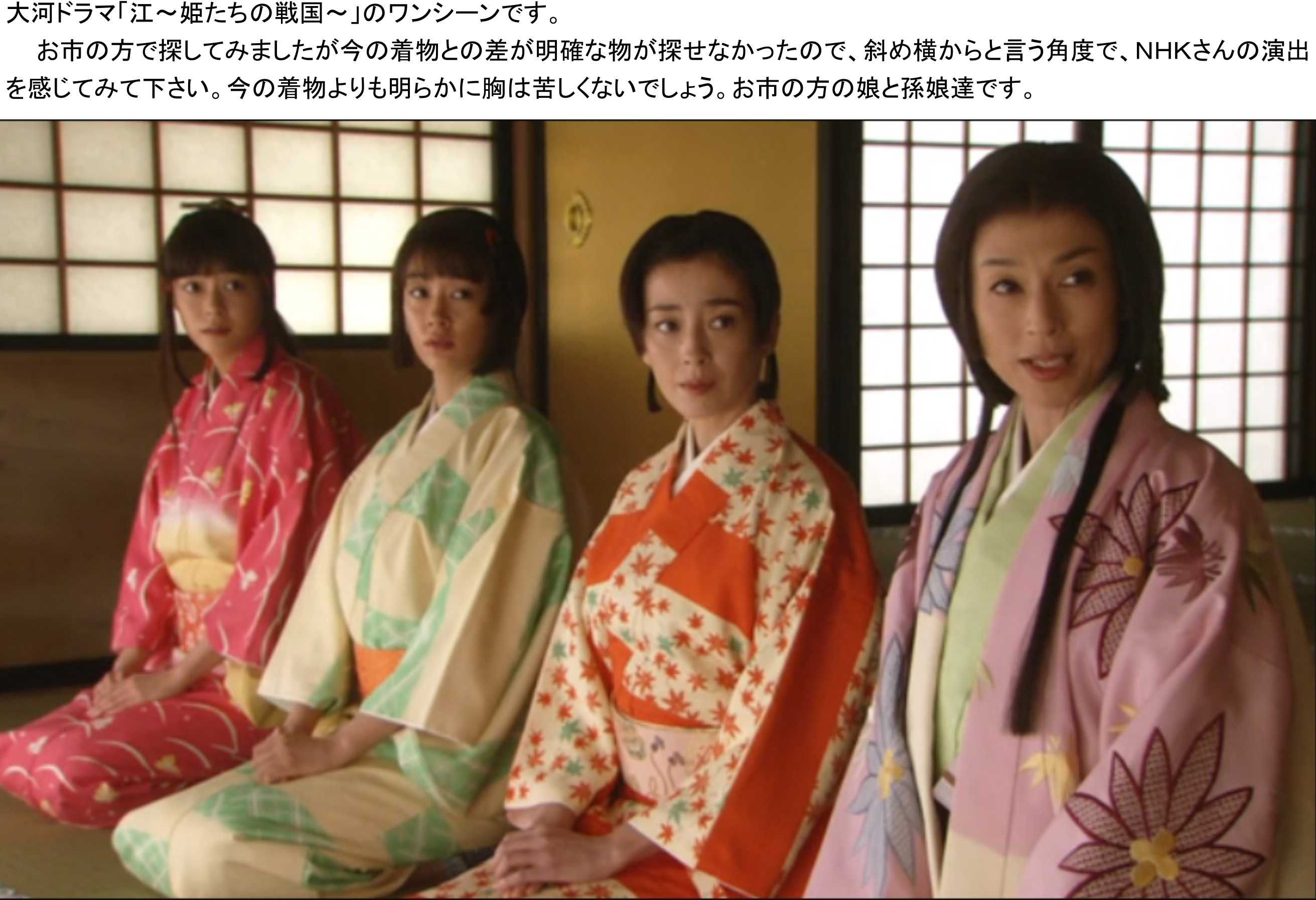 残されている絵が少なく反論もあるでしょうが、当時の今の半分の幅の帯でバストを現代の様に潰すのは、こちらの得意な物理として無理でしょうと書いておきます。着物を身につけた経験としては、すぐに着崩れして隠せなくなるはずです。それなら始めから魅せる武器に使って良縁を望んで普通でしょう。戦国時代の生き残りに相応しいと思います。