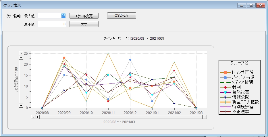データーは添付です。生データーなので可能性を見せているだけですが、12月に「汚職のバイデン氏」が当選に見えて、1月はトランプ氏に逆転しています。これだとフィルターで未来を分岐しても、この状況を維持出来るパターンを探せるでしょう。あとは見つけられるかです。